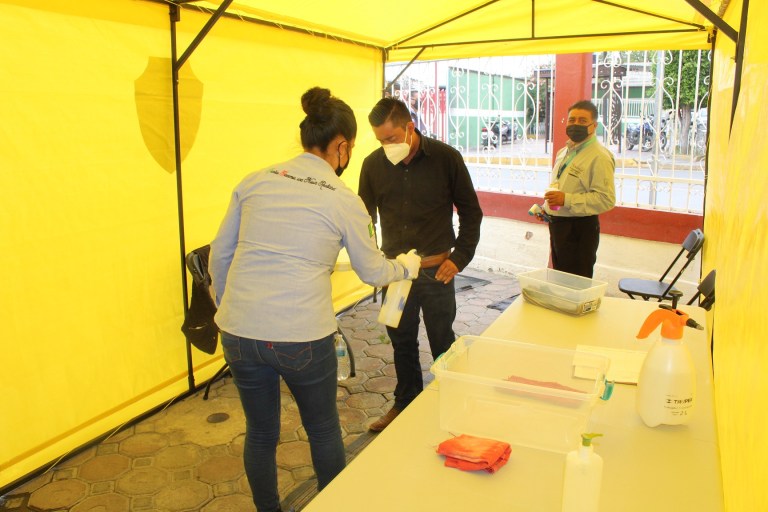 Como parte de la certificación, se puso en funciones un túnel sanitizante, para que, la población en general, que acude a realizar algún trámite al ayuntamiento, reciba la sanitización, que incluye limpieza de calzado con un tapete, sanitización completa, además de las pertenencias como celulares, llaves y otros objetos personales, colocación de gel antibacterial y lavado de manos con agua y jabón.