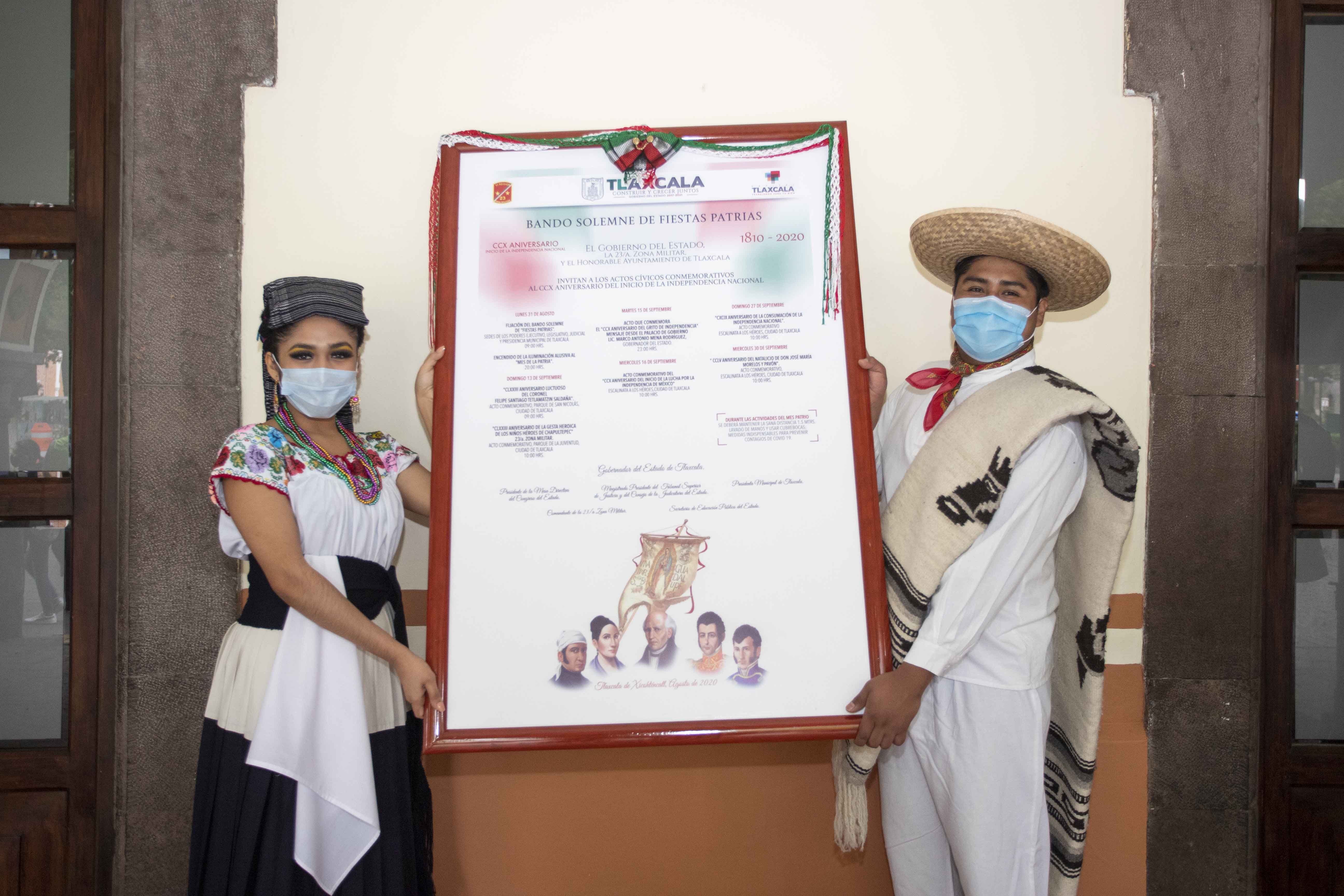La Secretaría de Gobierno (Segob) encabezó la colocación de Bandos Solemnes en las sedes de los tres poderes del Estado y la Presidencia Municipal de Tlaxcala, con lo que iniciaron de manera formal las actividades para conmemorar el 210 Aniversario del Inicio de la Independencia de México.