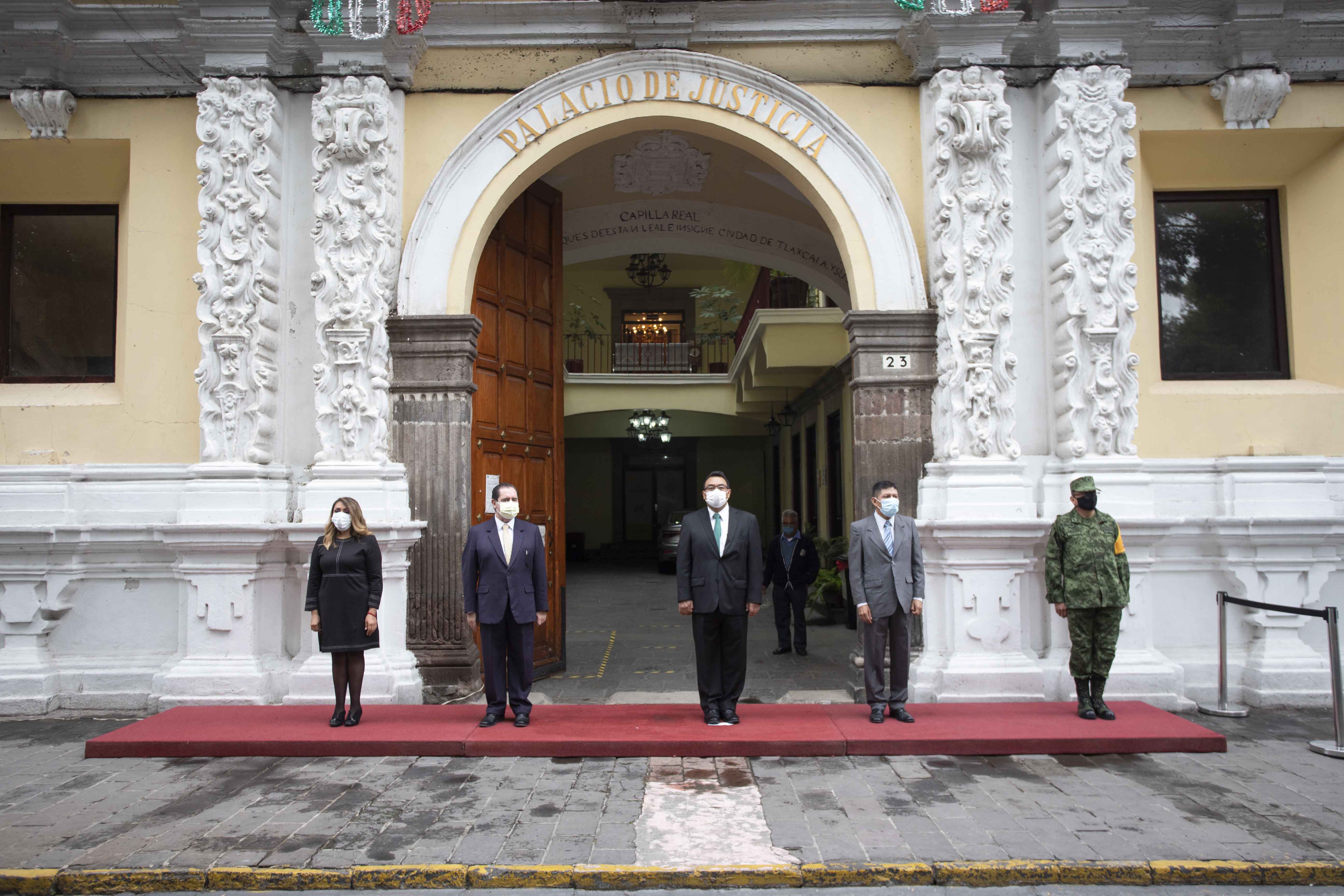 Autoridades de los tres órdenes de gobierno rindieron honores al lábaro patrio y entonaron el Himno Nacional, y posteriormente, se trasladaron a la antigua sede del Tribunal Superior de Justicia del Estado, en la capital tlaxcalteca, donde fijaron el Bando Solemne del Poder Judicial.