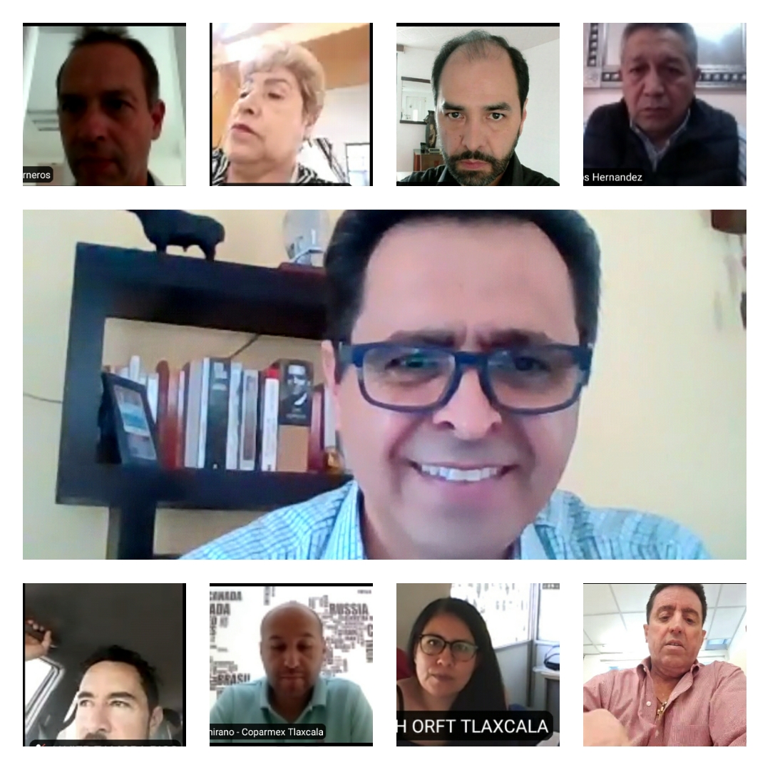 En la reunión virtual estuvieron presentes: Iván Gilberto Guarneros Gómez, Presidente de la Asociación de Empresas y Empresarios de Tlaxcala (AEET); José Noé Altamirano Islas, Presidente de la Confederación Patronal de la República Mexicana (Coparmex) y Javier Zamora Ríos, Presidente de la Cámara Nacional de la Industria Restaurantera y Alimentos Condimentados (Canirac).