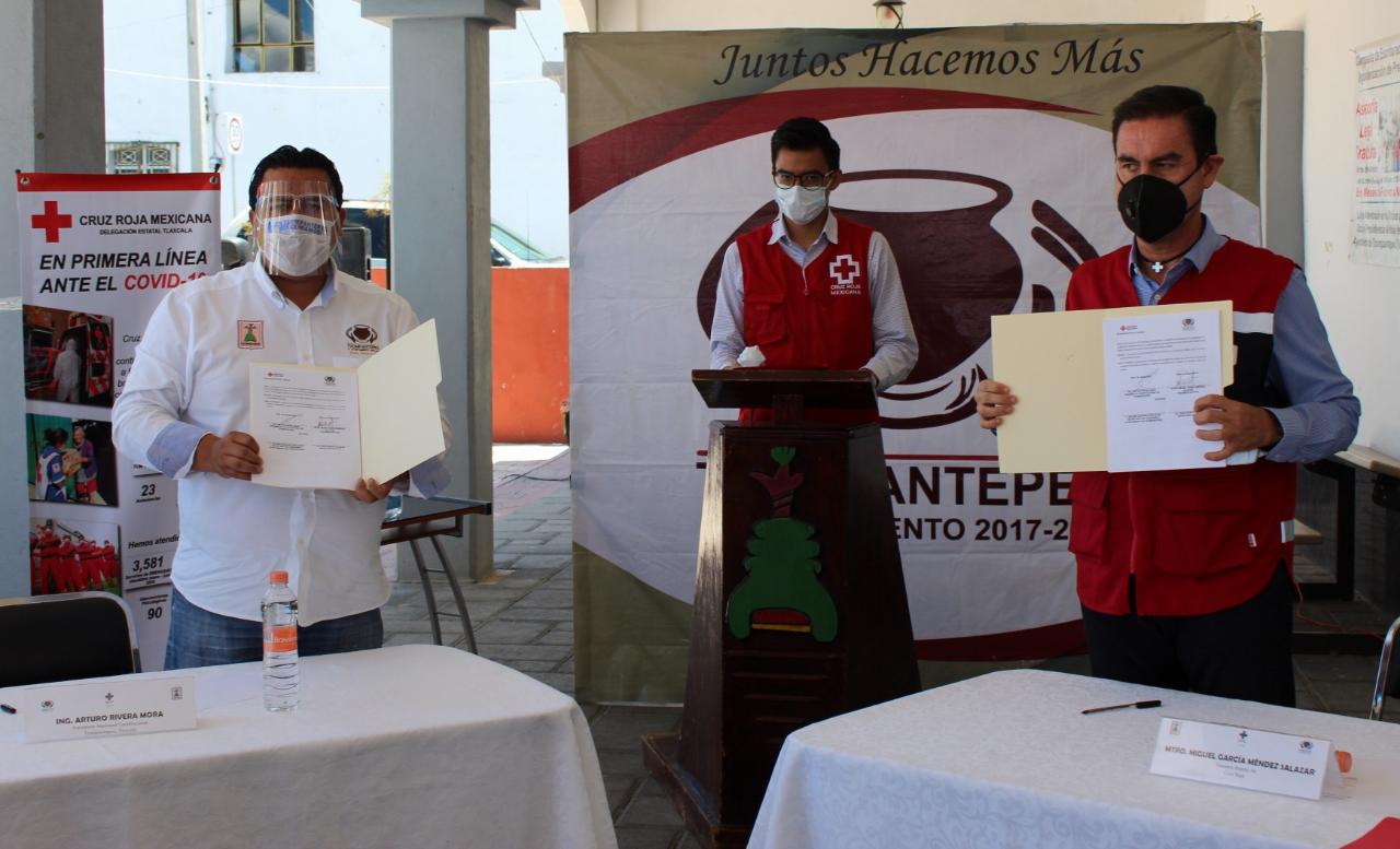 El presidente municipal de Tzompantepec Arturo Rivera Mora en compañía del Mtro. Miguel García Méndez Salazar quien se encontraba en representación de la presidenta del consejo estatal de Cruz Roja Mexicana I.A.P. Tlaxcala, Silvia Elena Rodríguez Guajardo; llevaron a cabo la firma del convenio de colaboración entre el Ayuntamiento de Tzompantepec y la Cruz Roja Mexicana I.A.P Tlaxcala, mismo convenio refiere la intervención de la institución de salud para atender traslados programados con carácter pre-hospitalario, con esto se pretende facilitar el traslado de pacientes que los requieran hacia su lugar de de destino.