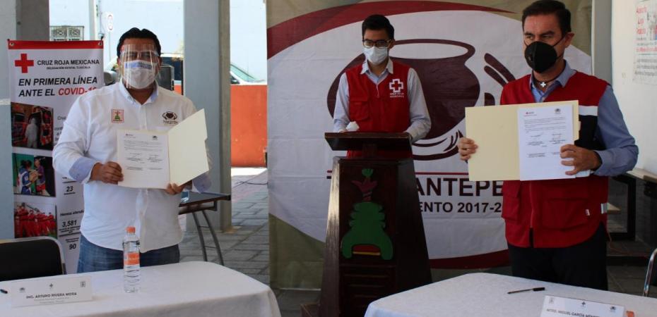 El presidente municipal de Tzompantepec Arturo Rivera Mora en compañía del Mtro. Miguel García Méndez Salazar quien se encontraba en representación de la presidenta del consejo estatal de Cruz Roja Mexicana I.A.P. Tlaxcala, Silvia Elena Rodríguez Guajardo; llevaron a cabo la firma del convenio de colaboración entre el Ayuntamiento de Tzompantepec y la Cruz Roja Mexicana I.A.P Tlaxcala, mismo convenio refiere la intervención de la institución de salud para atender traslados programados con carácter pre-hospitalario, con esto se pretende facilitar el traslado de pacientes que los requieran hacia su lugar de de destino.