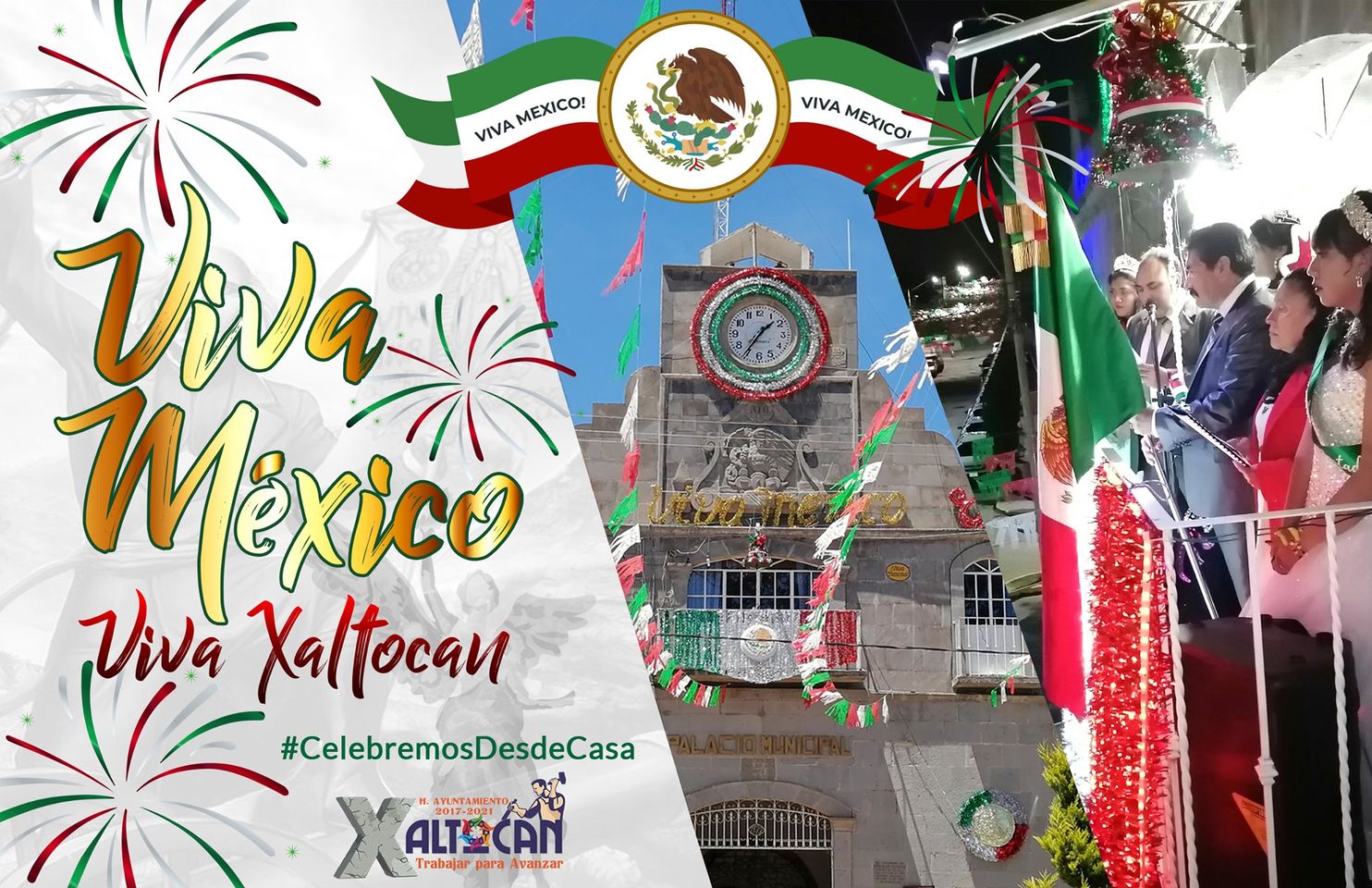 “Ahora nos corresponde celebrar desde nuestros hogares, cuidándonos en estos momentos difíciles para salir victoriosos de esta pandemia por el Covid19; ciudadanos Xaltoquenses, esta noche con gran júbilo y ánimo, por el orgullo de ser mexicanos y en memoria de los héroes que nos dieron patria y libertad gritemos fuertemente ¡Viva México! ¡Viva México! ¡Viva México! ¡Viva Xaltocan!” aseguró el presidente municipal de Xaltocan, Tlax.