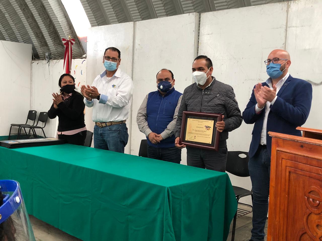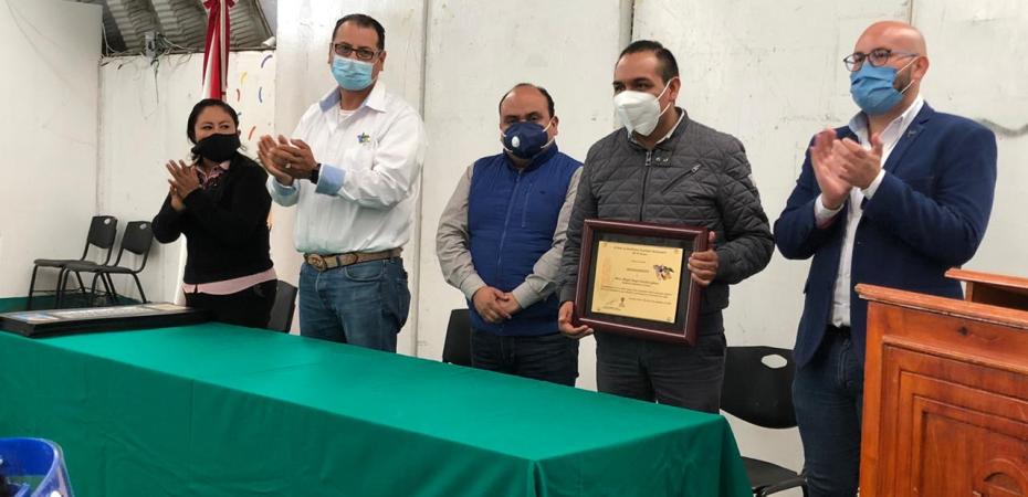 Autoridades escolares del CBTA 134 de San Francisco Tetlanohcan, representados por el Ingeniero Francisco Gómez Muñoz, director de esa institución educativa, entregó al Presidente Municipal de Ixtenco, Miguel Ángel Caballero Yonca un reconocimiento a su labor a favor de la comunidad estudiantil.