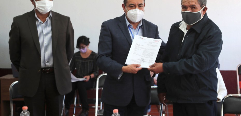 Acompañado del Director de Educación Básica de la USET, Roberto Lima Morales; y de la jefa del Departamento de Educación Indígena, Alma Rosa Sampedro Reyes; el Secretario de Educación Pública, entregó al maestro Rutilo Cocoletzi Flores, la orden de presentación y adscripción, como profesor frente a grupo con las funciones de docente itinerante para impartir la lengua náhuatl.