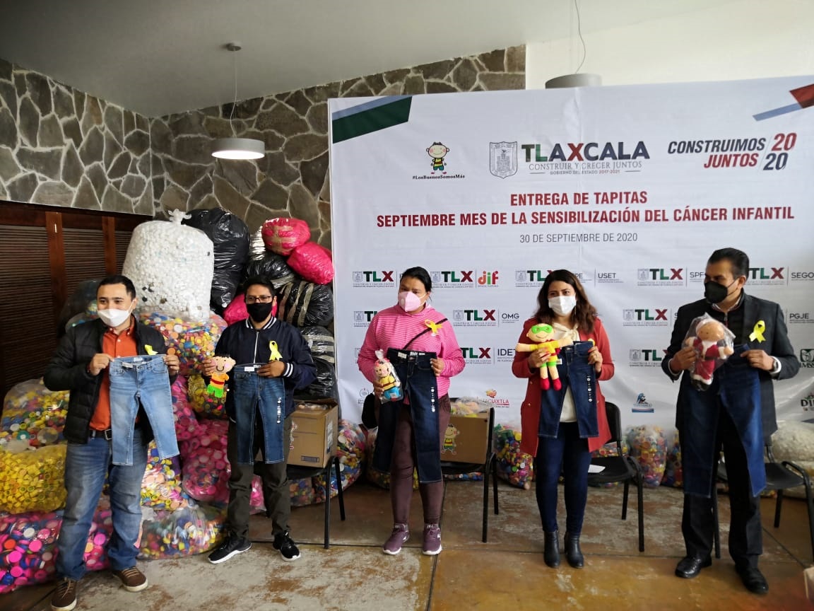 En el marco del mes de la sensibilización del Cáncer Infantil, el Instituto Tlaxcalteca de la Juventud (ITJ) entregó dos toneladas de tapas de plástico al Banco de Tapitas A.C., con el objetivo de apoyar el tratamiento de niños con cáncer.