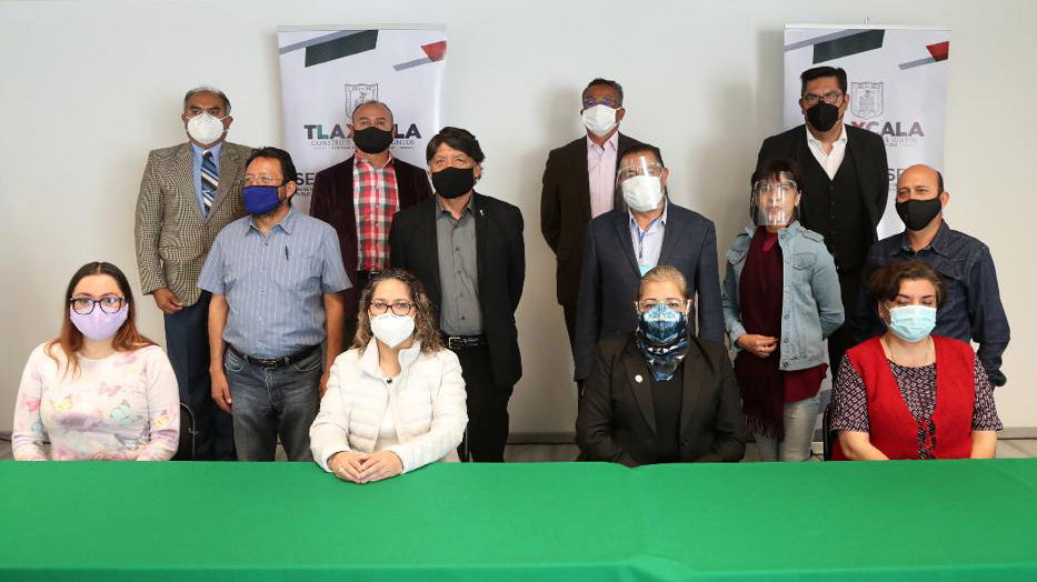 Para ingresar al evento, personal de la Secretaría tomó la temperatura a los asistentes, aplicó gel antibacterial y promovió el distanciamiento, como indican las recomendaciones del sector salud.