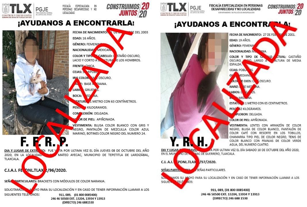 Las denuncias de no localización se registraron simultáneamente, la primera de ellas cuando la madre de la menor de edad informó ante la PGJE que su hija de iniciales F.F.R.P., salió de su domicilio ubicado en el municipio de Tepetitla de Lardizábal el pasado 8 de octubre y no regresó.