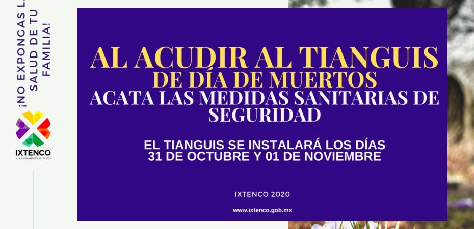 El Gobierno Municipal de Ixtenco, que encabeza Miguel Ángel Caballero Yonca, indicó que toda vez que el tradicional tianguis de día de muertos se instalará como de costumbre, se reforzarán las medidas sanitarias de seguridad, a fin de evitar una ola de contagios por COVID-19.