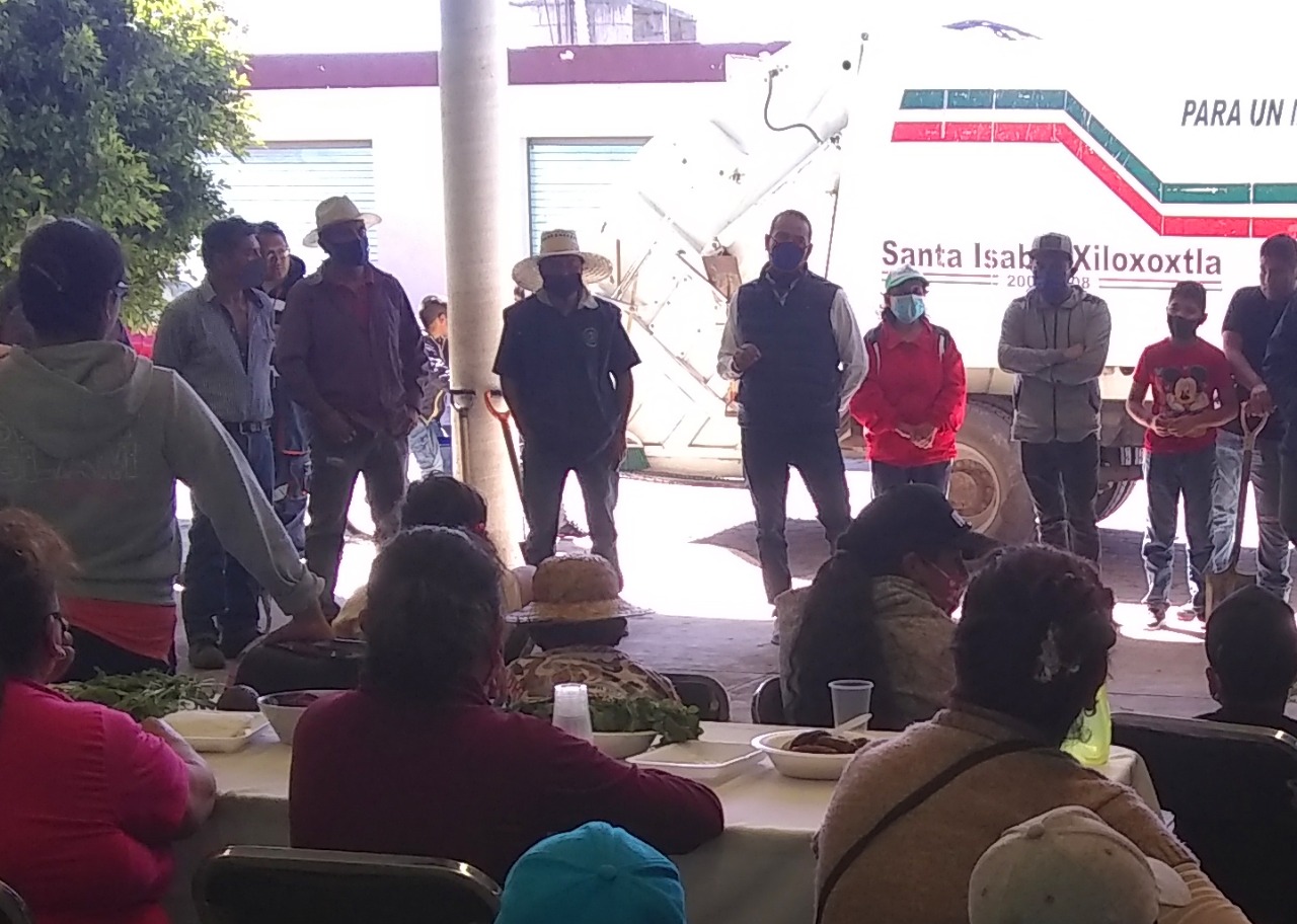 El presidente municipal de Santa Isabel Xiloxoxtla, Jaime Pérez Juárez, acompañado de vecinos del barrio de Chimalpa, quienes se organizaron para realizar una faena de limpieza, buscando generar la conciencia social de la participación.