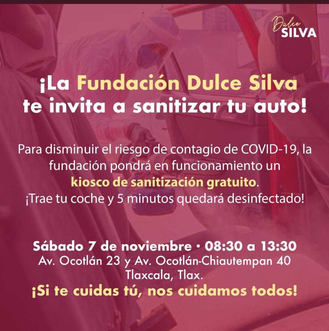 Hoy sábado siete de noviembre, paremos en seco los contagios por Covid-19 sanitizado sin costo nuestro automovil en uno de los dos kioscos que con ese fin La Fundación Dulce Silva instaló en la Ciudad de Tlaxcala.