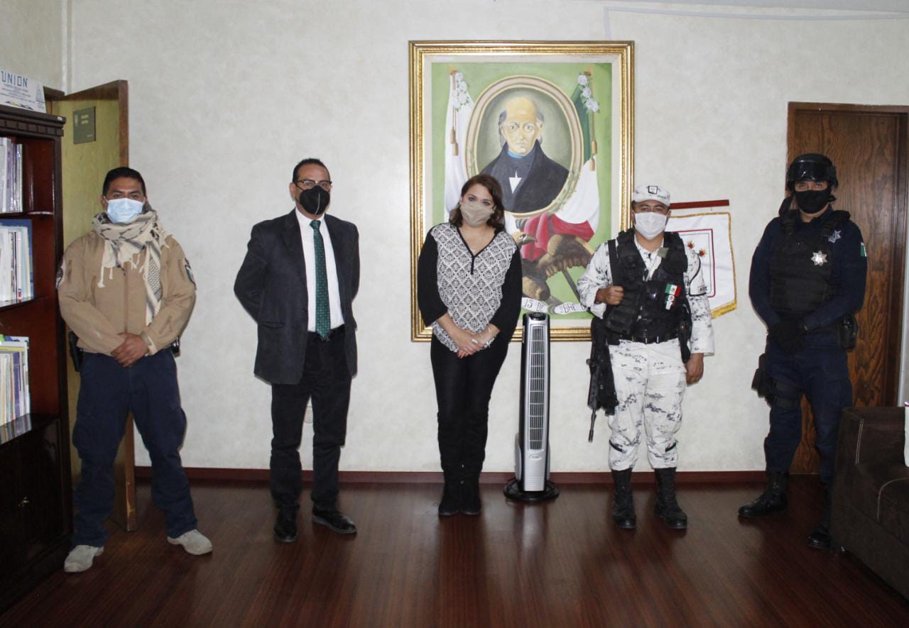 En la reunión estuvieron presentes; El Comisario Municipal de Seguridad Omar Santamaria y elementos de la Guardia Nacional, quienes en seguida comenzaron con los protocolos de coordinación para el fortalecimiento de seguridad.