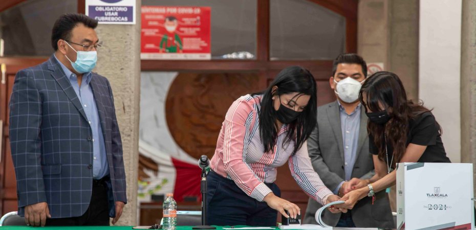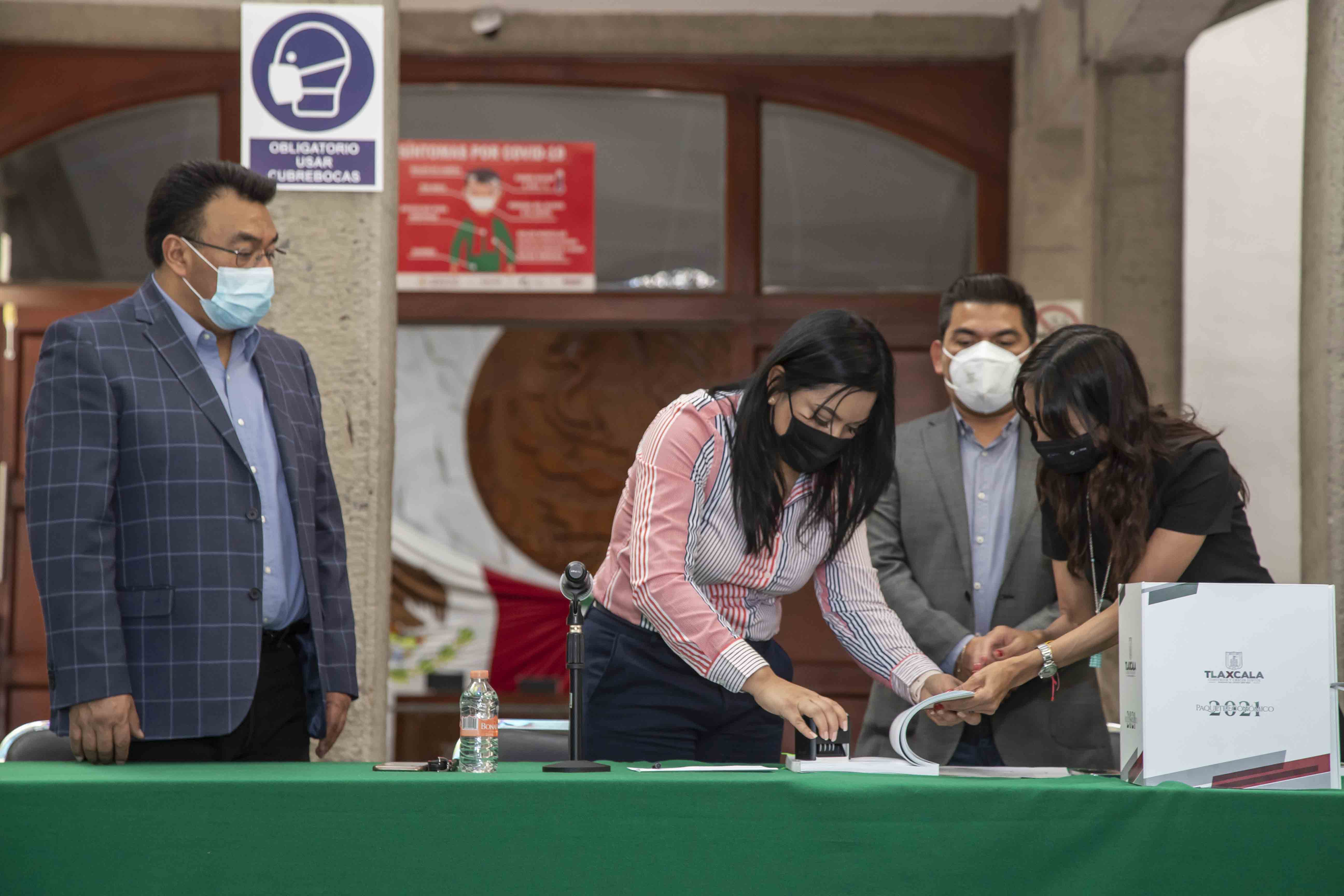 Así, la Secretaria de Planeación y Finanzas, Alejandra Nande Islas -acompañada por el Secretario de Gobierno, José Aarón Pérez Carro y Ramón Rafael Rodríguez Mendoza, Consejero Jurídico del Ejecutivo Estatal-, entregó el Paquete Económico 2021 a la Diputada María Isabel Casas Meneses, Presidenta de la Mesa Directiva del Congreso del Estado.