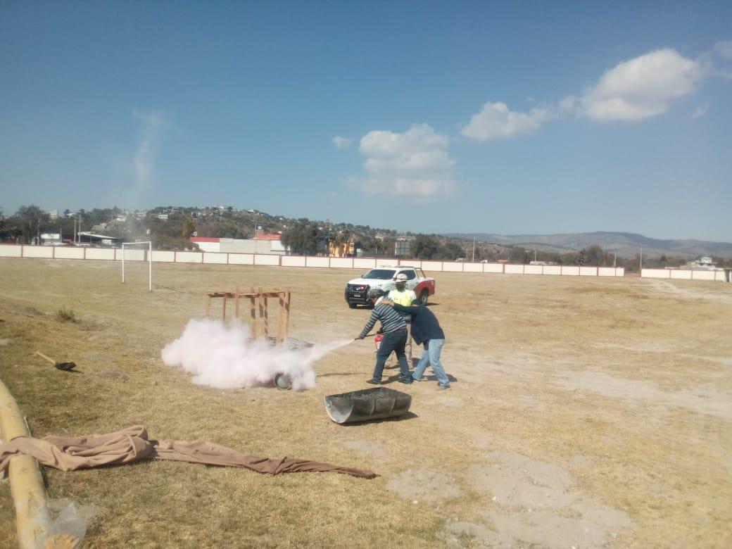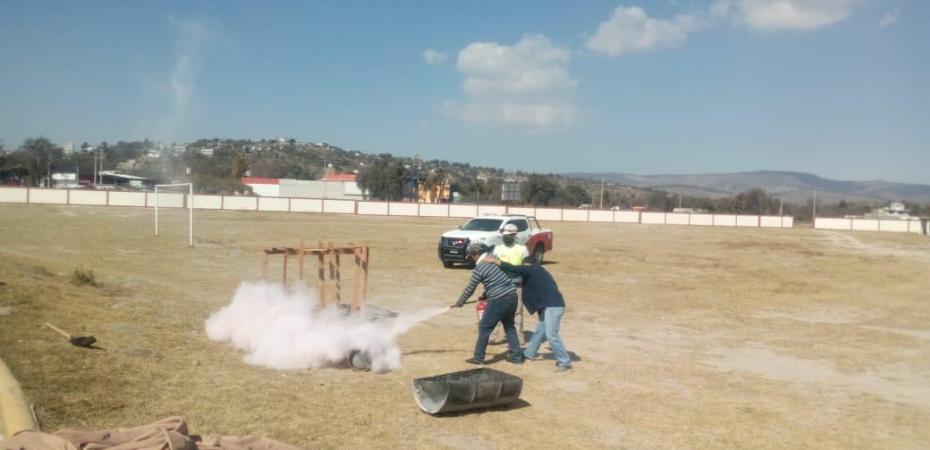 Con la finalidad de evitar accidentes de fuego o fugas de gas, la Dirección de Protección Civil Municipal en coordinación con Protección Civil Estatal, acudieron al tianguis “El Tequexquital” donde los capacitadores impartieron los temas: “Uso y manejo del extintor” y “¿Qué hacer en caso de conato de incendio”.