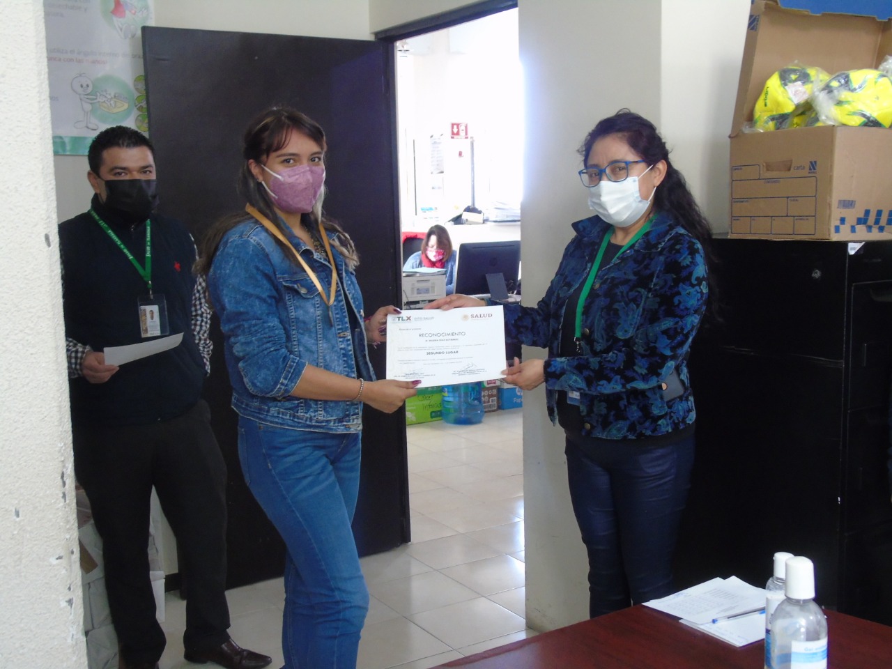 Asistieron a la entrega de reconocimientos, Saraí Hernández Jiménez, Líder Estatal del Programa de Atención a la Salud de la Adolescencia; Ángeles Osorio Santos, Líder Estatal del Programa Prevención del Maltrato Infantil y Frank Mark Ibarra Muñoz, Líder Estatal del Programa de Nutrición Infantil y Adolescencia.