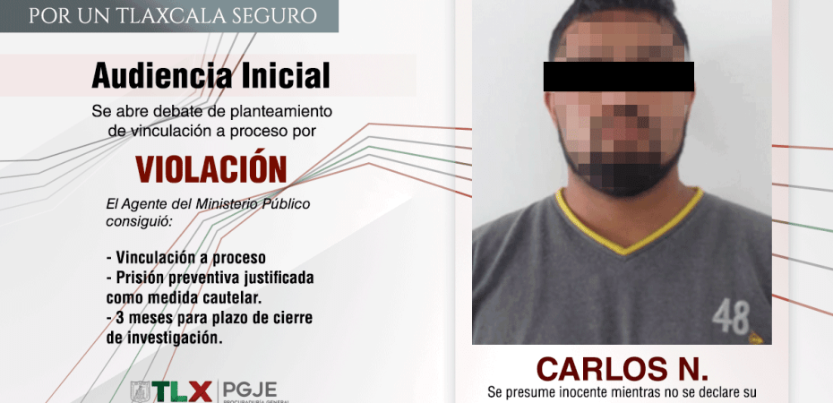 Resultado del trabajo coordinado de agentes del Ministerio Público, peritos y oficiales de la Policía de Investigación, la Procuraduría General de Justicia del Estado (PGJE) logró la vinculación a proceso de Juan Carlos N., por el delito de violación en agravio de su sobrina menor de edad.