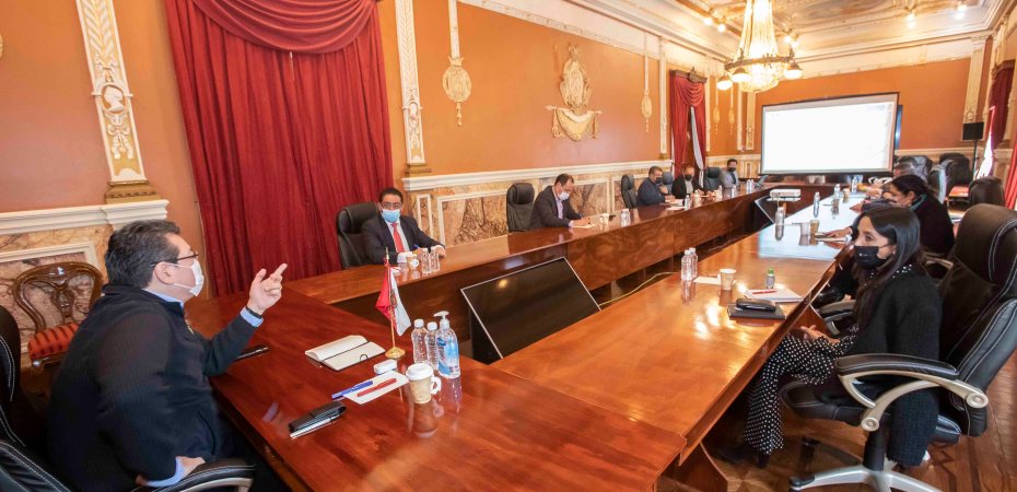 El Gobernador Marco Mena encabezó la reunión con el Grupo de Salud y Economía del Gobierno del Estado para revisar el panorama epidemiológico de Covid-19 en Tlaxcala, la disponibilidad hospitalaria, material médico, así como el abastecimiento de las distintas brigadas que recorren la entidad para difundir información y medidas preventivas.