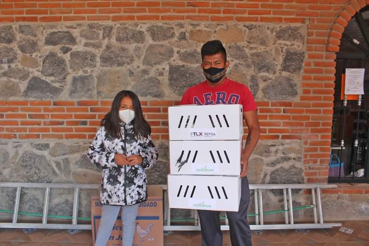 El Programa de Apoyo a la Economía Familiar (PAEF) que lleva a cabo la Secretaría de Fomento Agropecuario en coordinación la Dirección de Desarrollo Municipal del Municipio de Xaltocan, entregaron este viernes: 44 paquetes de pollas de postura, 10 paquetes de pollo campero y 31 paquetes de pavos, beneficiando en total a ochenta y cinco familias de las diferentes comunidades del municipio de Xaltocan.