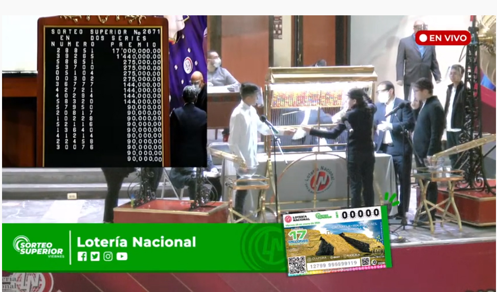 Cabe señalar que el sorteo estuvo encabezado por Mitzi Jocelyn Molina Ramírez, Gerente de Sorteos, en representación de Margarita González Saravia Calderón, Directora General de la Lotería Nacional.