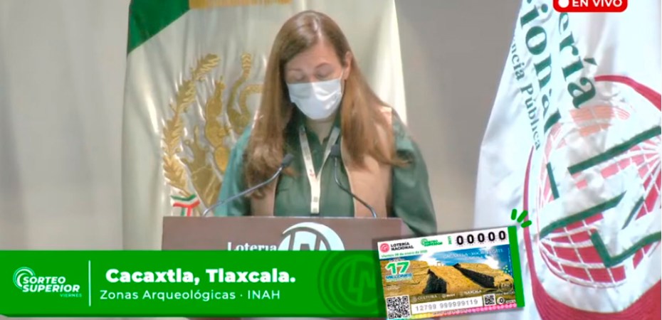 En su oportunidad, Yuriria Estela Robles Aguayo, Subgerente de Relaciones Públicas, destacó que en coordinación con el Instituto Nacional de Antropología e Historia (INAH), a través del sorteo se recuerda a Cacaxtla-Xochitécatl, que se encuentra ubicado al sur de Tlaxcala, y detalló que la palabra “Xochitécatl” significa el habitante o el nativo de Xochitlán, mientras que otra traducción podría ser “Lugar del Linaje de las Flores”.