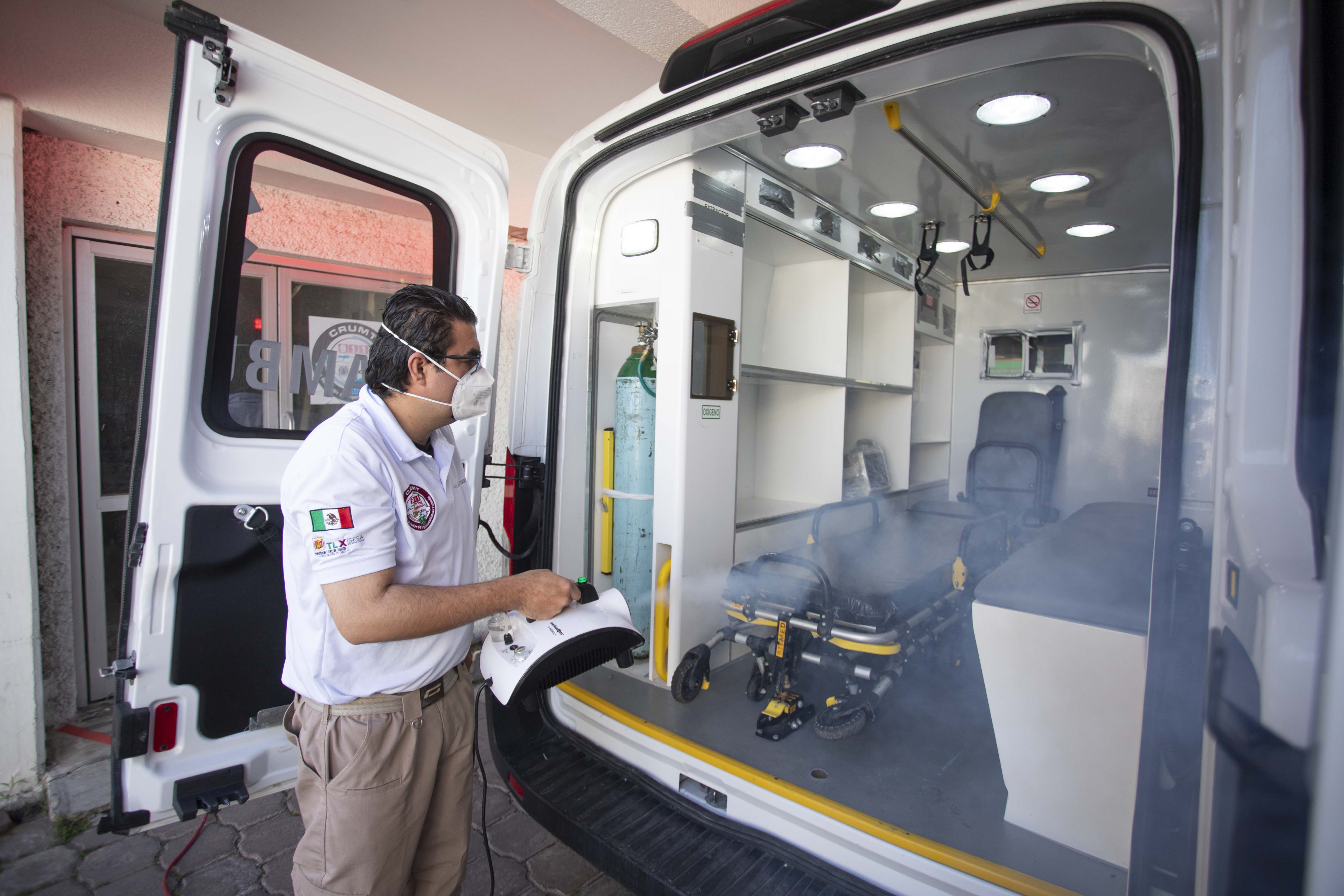 Alejandro Garrido Calva, responsable del Crumt, indicó que el personal paramédico fortalece sus protocolos de actuación antes casos de emergencia y garantiza la atención prehospitalaria, interhospitalaria y traslado de pacientes con Covid-19 que reciben a través de reportes al número de emergencias 9-1-1.