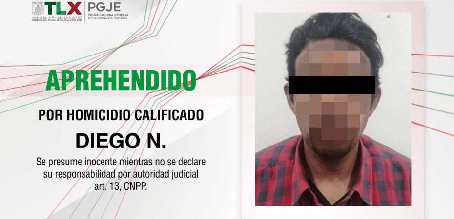 Resultado de una acción coordinada entre agentes del Ministerio Público, peritos y oficiales de la Policía de Investigación adscritos a la Procuraduría General de Justicia del Estado (PGJE), se logró la aprehensión de Diego N., quien cuenta con un proceso en su contra por el delito de homicidio calificado.