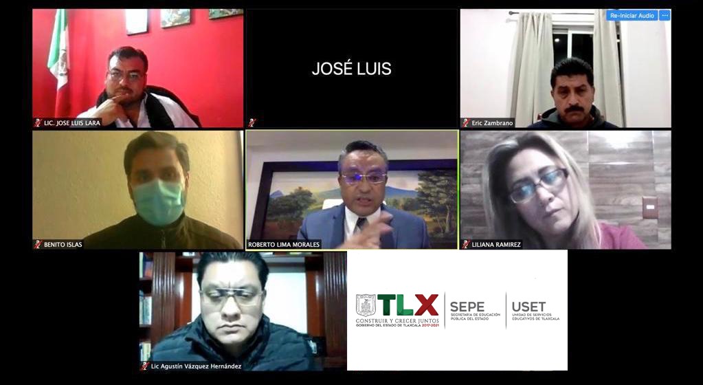 El Secretario de Educación Pública, Roberto Lima Morales, encabezó una reunión virtual de trabajo con la Dirección de Educación Media Superior y Superior con el propósito de trazar líneas de acción para cimentar el desarrollo de la educación en Tlaxcala.