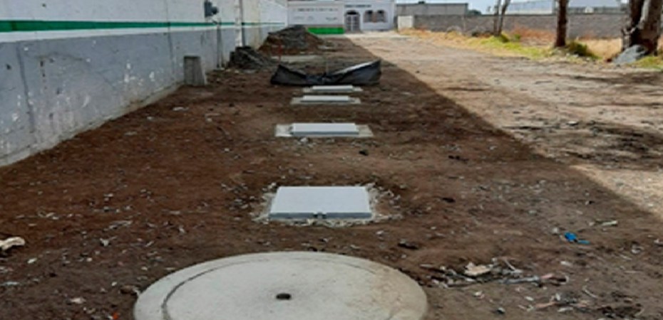 Como parte del proyecto se suministraron y colocaron tres cisternas de 10 mil litros para la captación del agua, así como una bomba autocebante, tubería hidráulica y la salida eléctrica para la alimentación de la bomba.