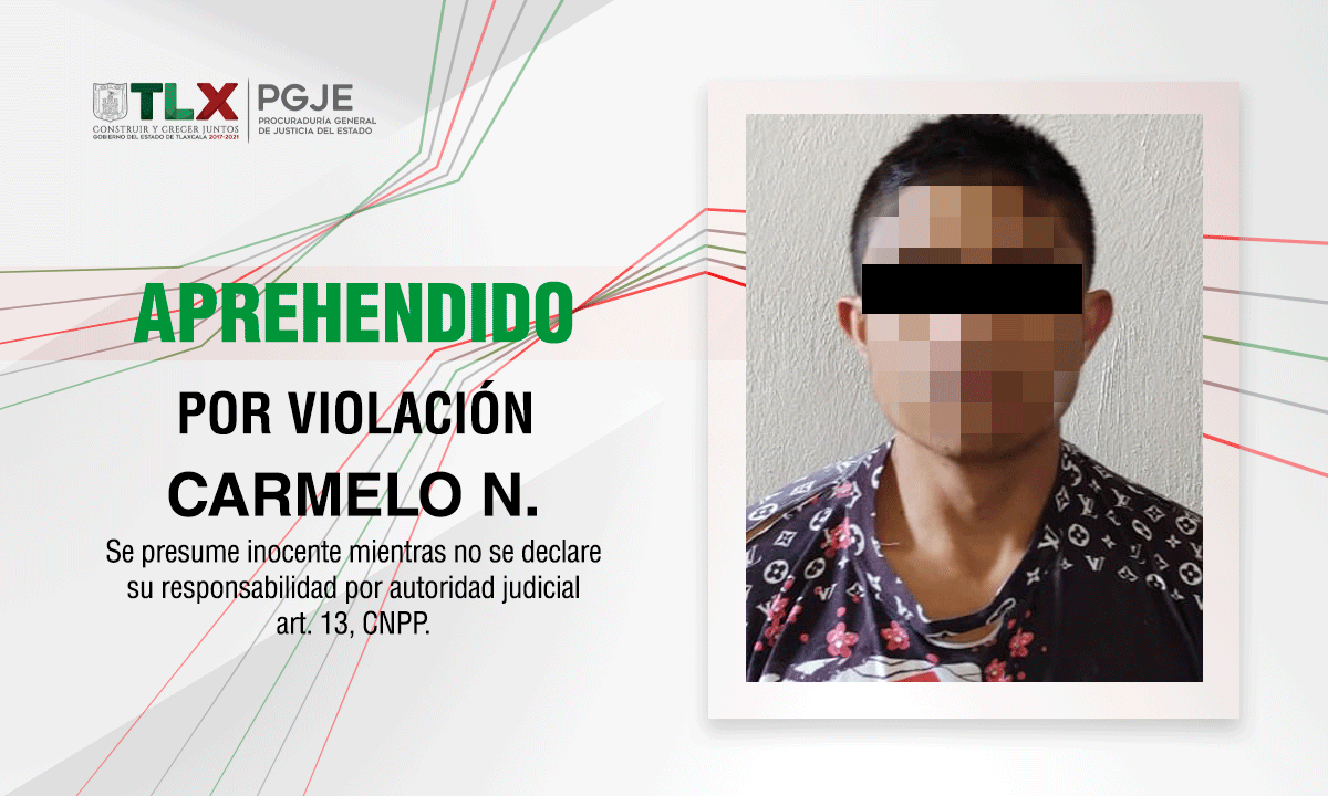 Producto de una investigación exhaustiva y científica a cargo de los oficiales de la Policía de Investigación adscritos a la Procuraduría General de Justicia del Estado (PGJE), se logró identificar y aprehender a Carmelo N., como probable responsable del delito de violación en agravio de una menor de edad.
