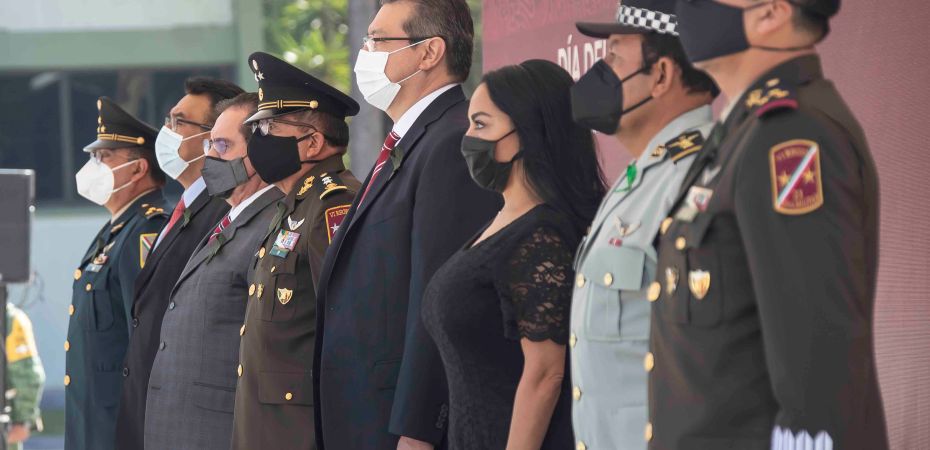 En el evento estuvieron la Diputada Mayra Vázquez Velázquez, Presidenta de la Mesa Directiva del Congreso Local; el Magistrado Fernando Bernal Salazar, Presidente del Tribunal Superior de Justicia; José Aarón Pérez Carro, Secretario de Gobierno; el General Comisario, Jaime Contreras Chávez, Coordinador Estatal de la Guardia Nacional, entre otras autoridades castrenses.