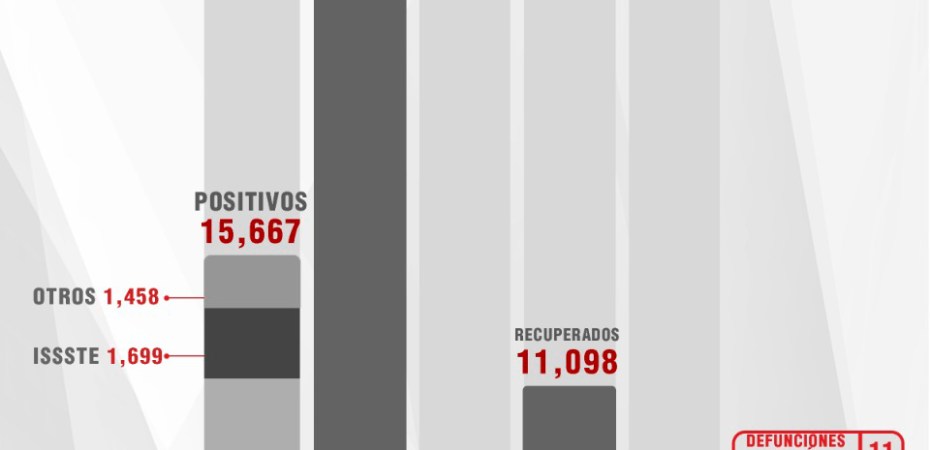 De esta manera, el estado registra 11 mil 98 personas recuperadas, 15 mil 667 casos positivos y dos mil 82 fallecimientos.