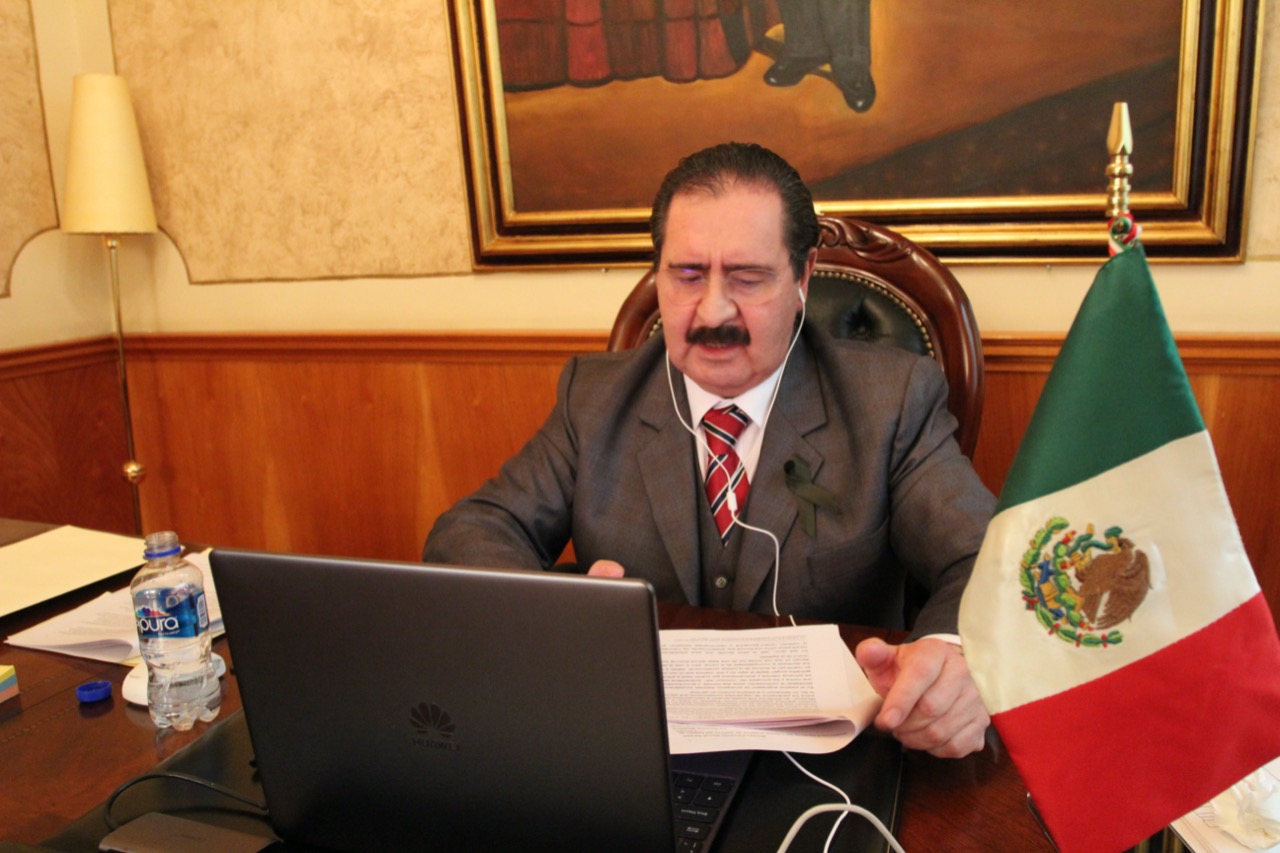 A través de una plataforma virtual, el magistrado habló sobre los antecedentes de los Tribunales de Control Constitucional en el mundo y el país, efectuó un análisis sobre los avances alcanzados e hizo consideraciones sobre los parámetros entre la aplicación de los medios de Control Constitucional en los estados.