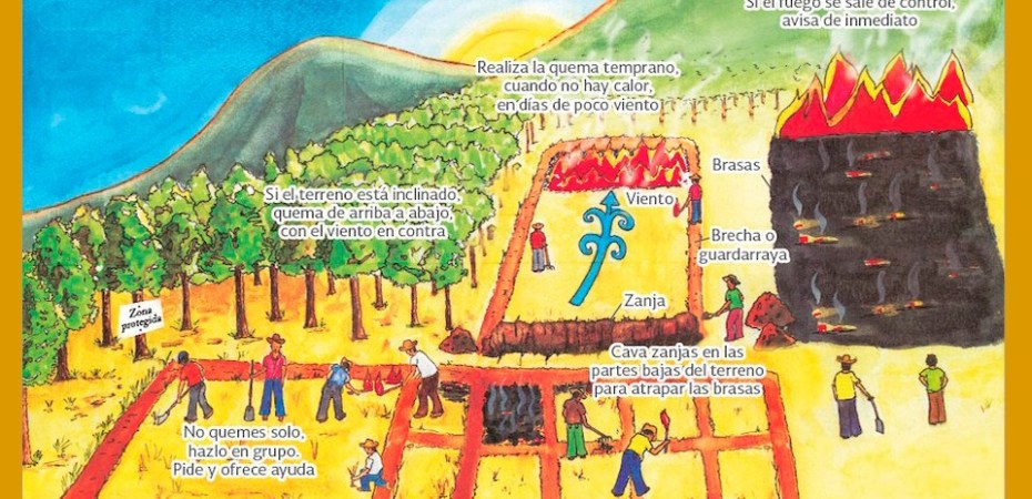 Es importante tomar en cuenta que no quemes solo, hacerlo siempre en grupo, pidiendo y ofreciendo ayuda antes de quemar, con la finalidad de que en caso de que salga de control el fuego, se puedan apoyar en sofocar o pidiendo ayuda, para que se eviten riesgos mayores, además de hacer guardarrayas alrededor del terreno y quemando por partes, haciendo franjas.