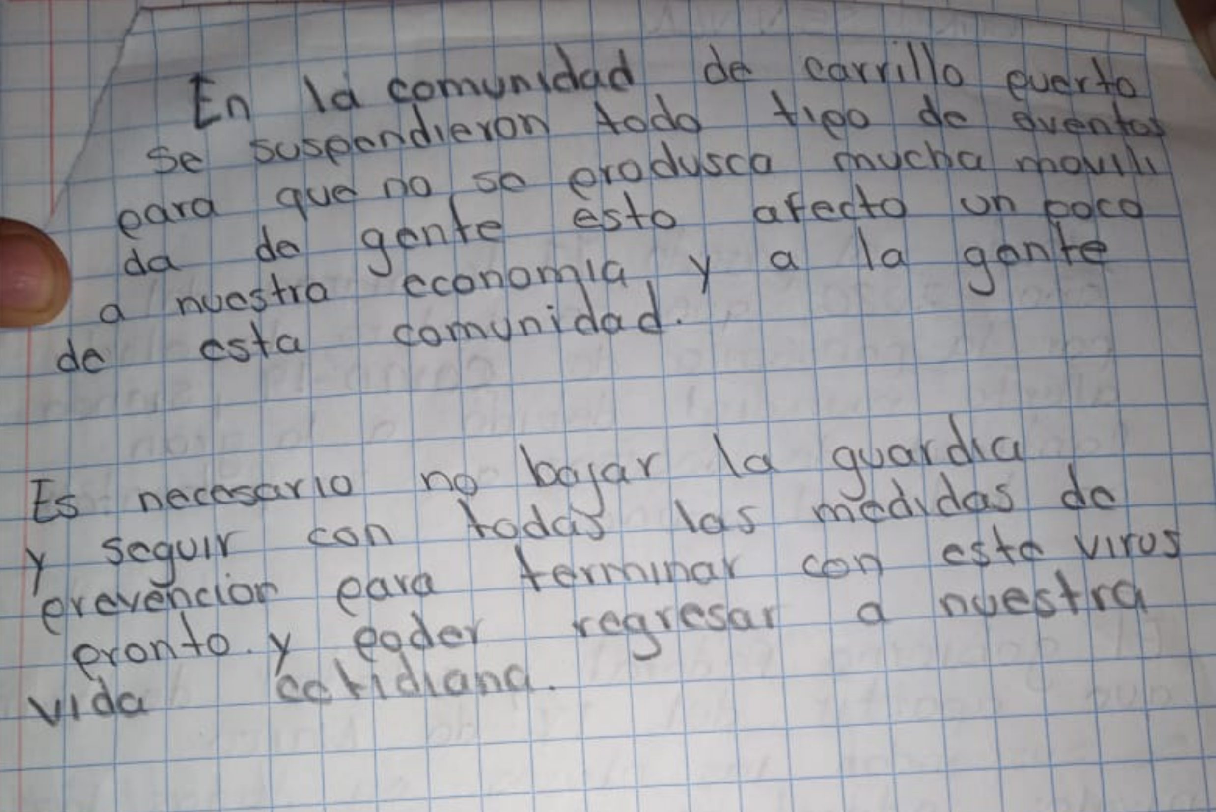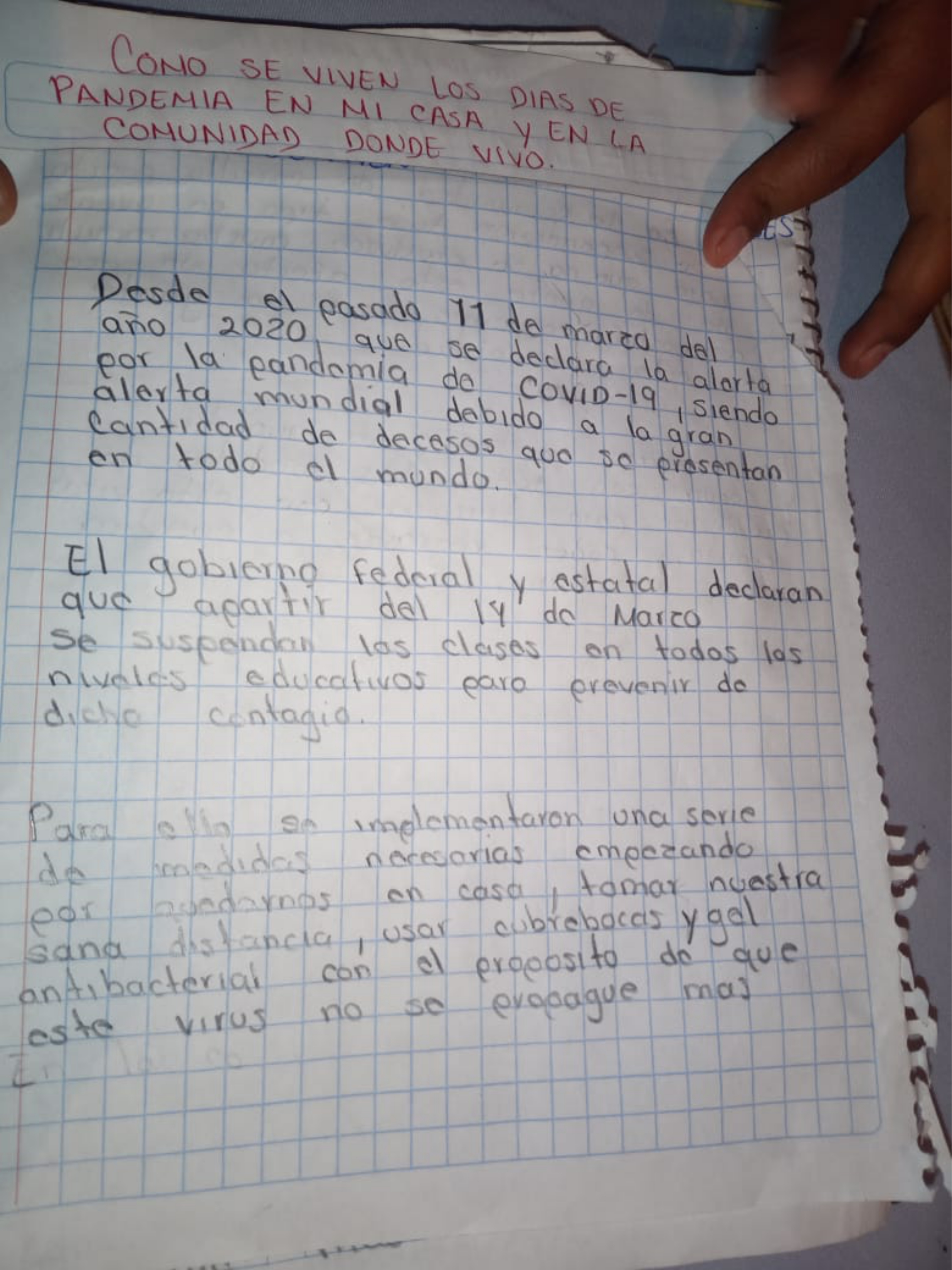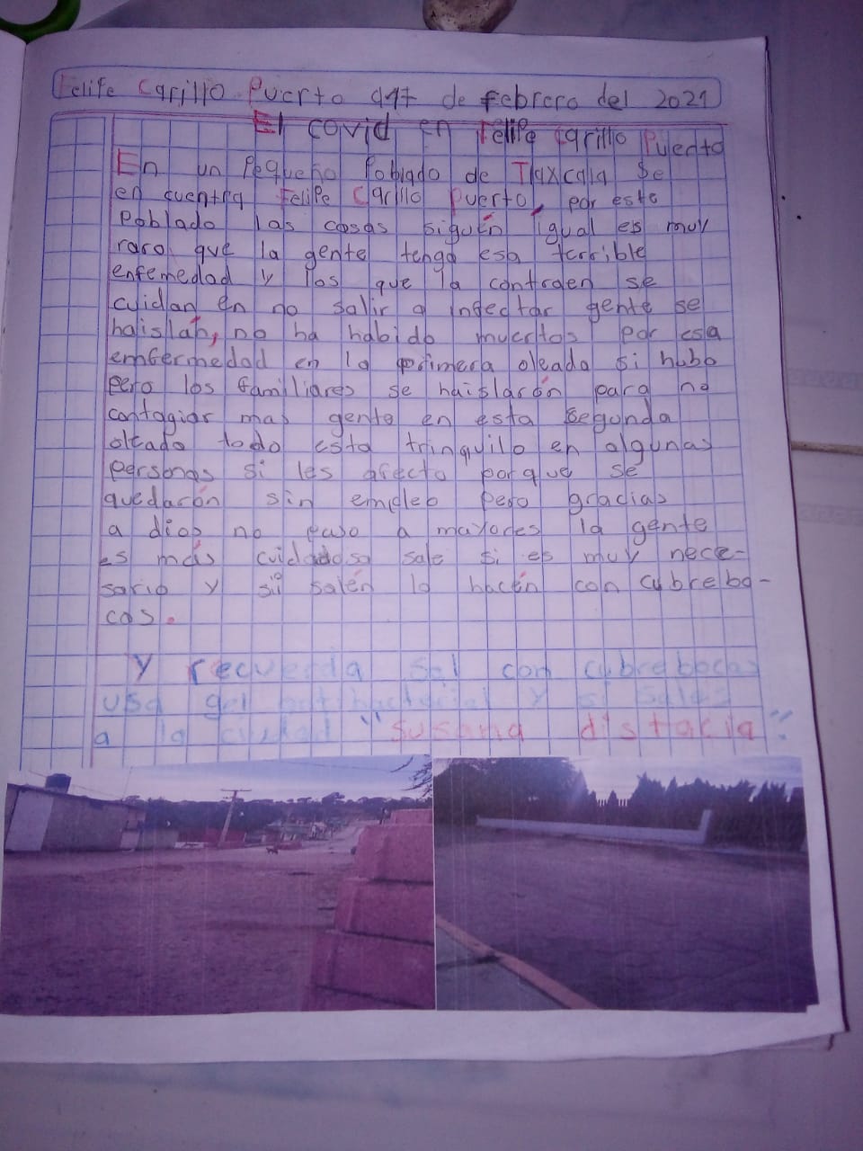 Como parte de las actividades de lectura y redacción que se realizan en la escuela primaría «Ricardo Flores Magón» del 3ro grado, de la comunidad de Carrillo Puerto del Municipio de Atltzayanca, Tlax., los niños de este grupo realizaron algunas notas periodísticas, señalando como se vive la pandemia del Sarscov-2, más conocido por la población como COVID-19.