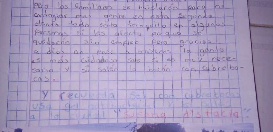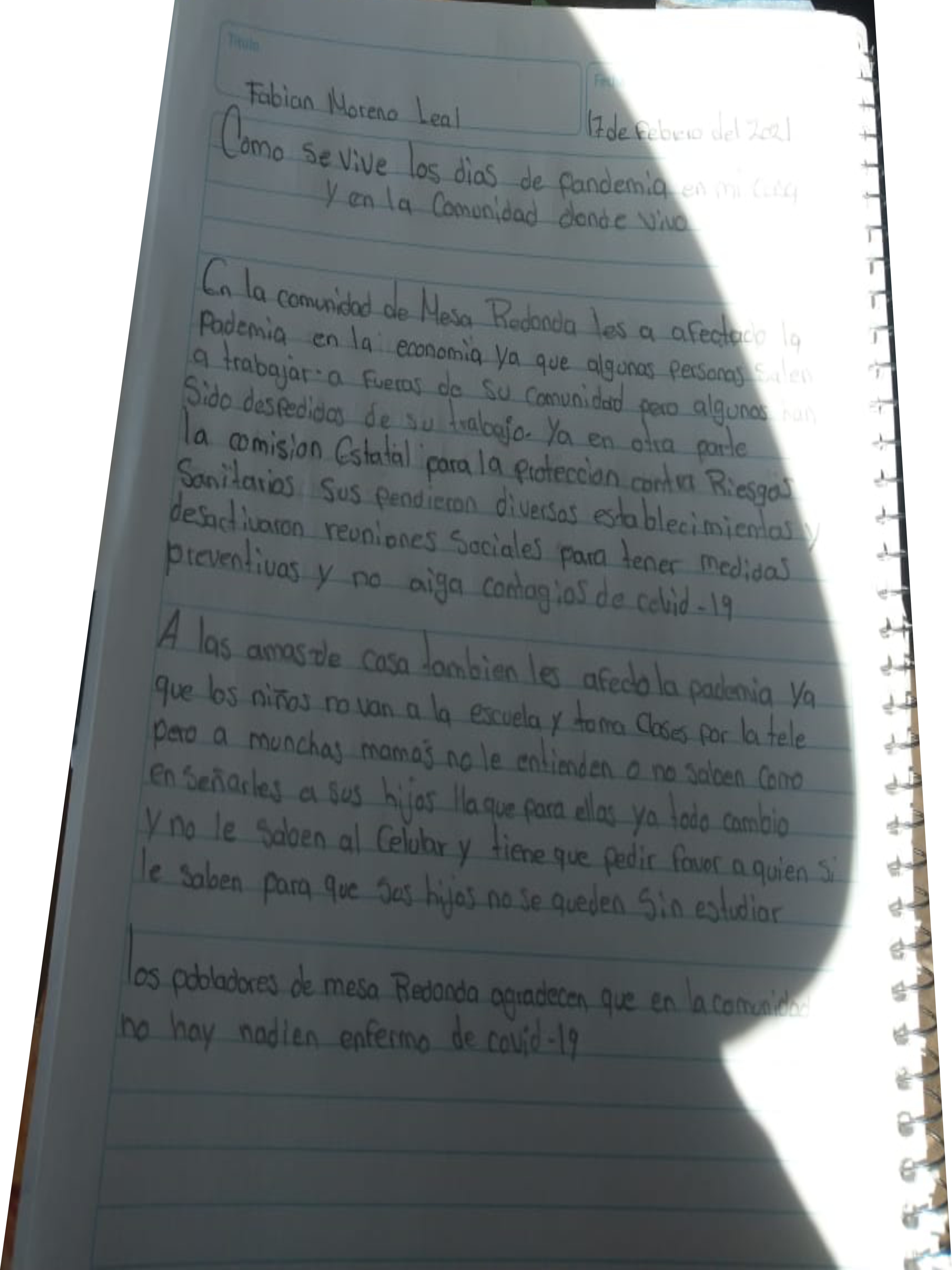 Por ello y con la autorización de los autores de los textos, maestra de grupo y padres de familia, es que replicaremos de manera integra las notas que estos pequeños realizaron, con la finalidad de que se de a conocer como es que ellos, ven la vida cotidiana y de que manera han percibido el cambio social y todo su entorno por las condiciones que se han vivido a ya casi un año.