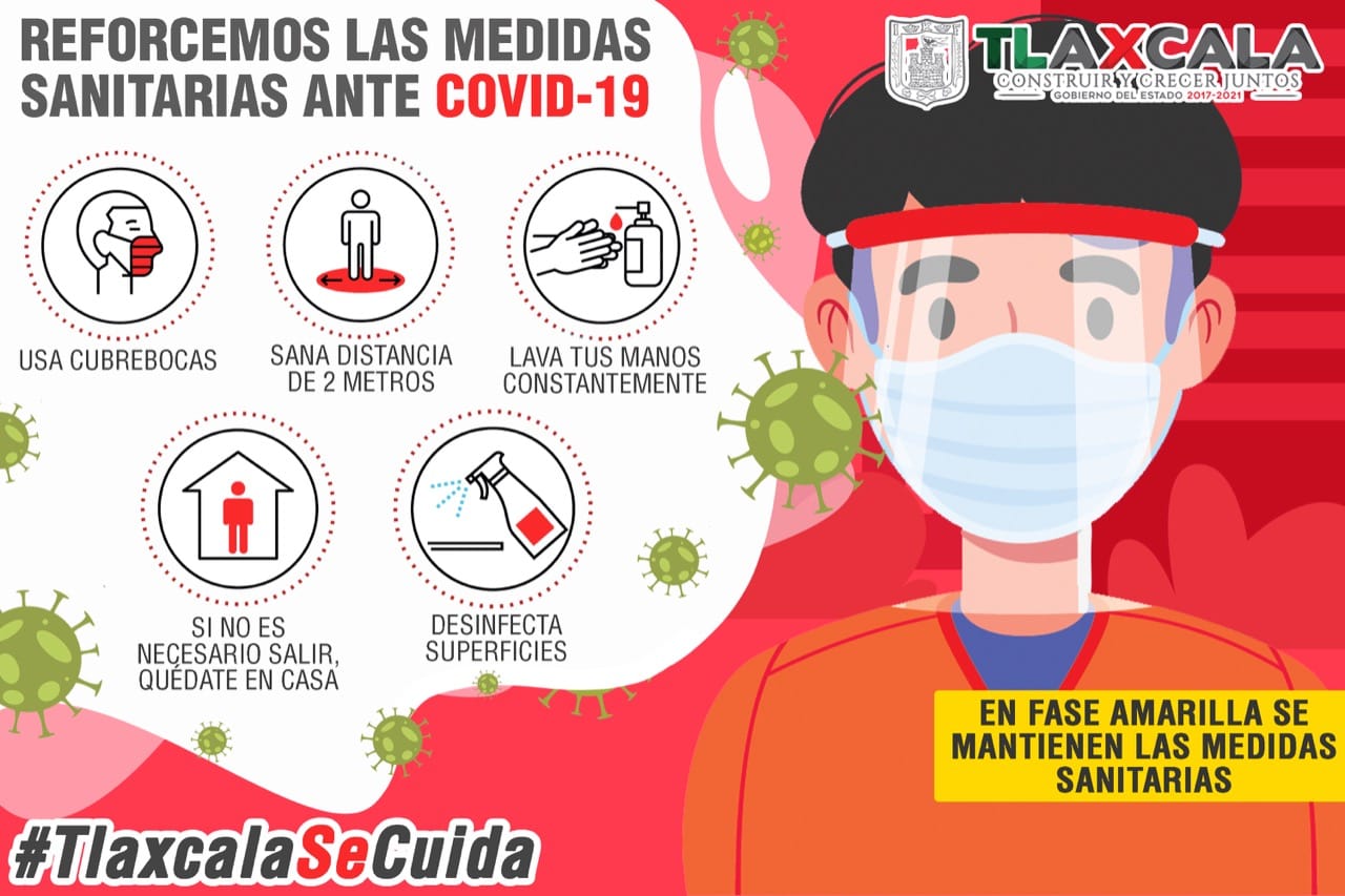 De igual forma, el Gobierno del Estado recomienda a la población reforzar los cuidados básicos como el uso de cubrebocas, mantener distancia física, lavar las manos constantemente, evitar tocarse ojos, nariz o boca, desinfectar superficies y en caso de no ser necesario permanecer en casa, esto con el propósito contener la propagación del Covid-19.