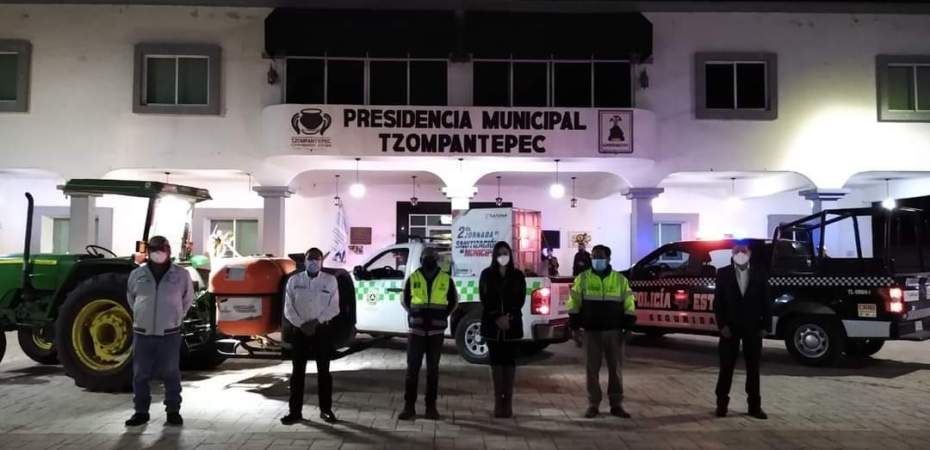La Alcaldesa Diana Laura Montiel Moreno, en coordinación con el Secretario del Ayuntamiento Christian Salinas Hernández, así como la Coordinación de Protección Civil Municipal y Estatal, encabezan la sanitización de algunas de las calles del Municipio de Tzompantepec esto dentro del programa «Municipio Libre de Covid», siendo esta la segunda vez que se realiza, con la finalidad de asegurar a la población que está comuna cubre las medidas sanitarias establecidas por el Sector Salud; Cabe mencionar que estas acciones se estarán realizando en las cinco comunidades.