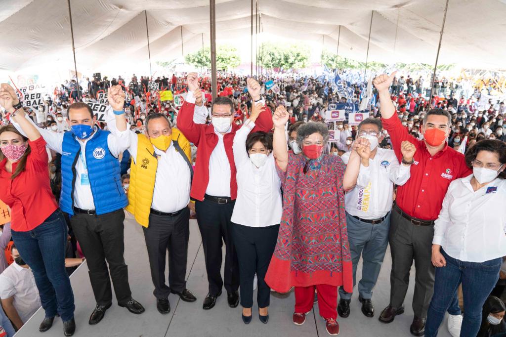 Ante los líderes nacionales de los partidos Revolucionario Institucional, Alejandro Moreno Cárdenas; Acción Nacional, Marko Cortés Mendoza y de la Revolución Democrática, Jesús Zambrano Grijalva; Anabell Ávalos destacó que representar a cinco partidos políticos es una oportunidad histórica, por lo que se comprometió a no fallarles y obtener el triunfo el 6 de junio.