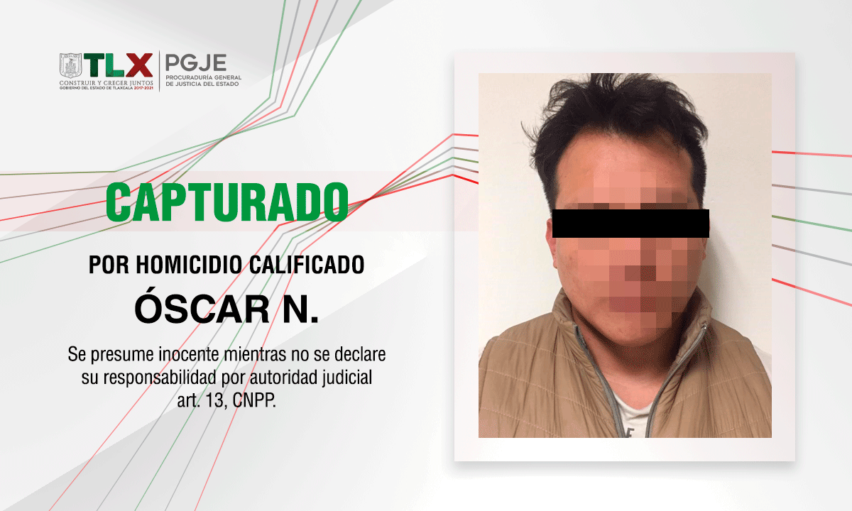 Tras acreditar su participación en el homicidio de un hombre en 2019, Óscar N., fue capturado por oficiales de la Policía de Investigación adscritos a la Procuraduría General de Justicia del Estado (PGJE), e ingresado al Centro de Reinserción Social (Cereso), donde enfrentará su proceso en prisión preventiva oficiosa.