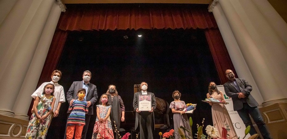 El Gobernador Marco Mena y la Presidenta Honorífica del Sistema Estatal DIF, Sandra Chávez Ruelas, asistieron al concierto de reapertura del Teatro Xicohténcatl, en reconocimiento a la trayectoria del pianista y compositor tlaxcalteca Roberto Pérez Ortiz.