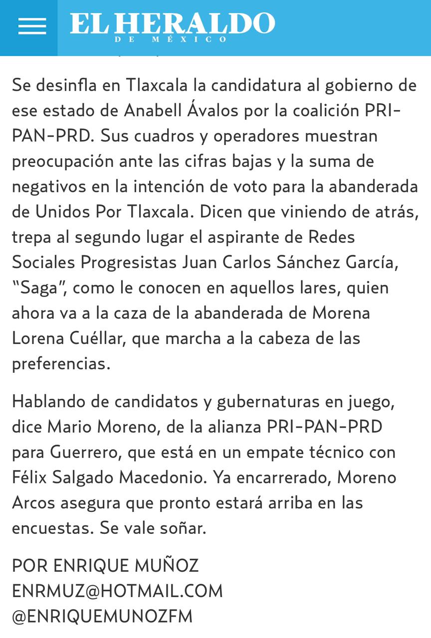 Esta mañana en columna de opinión del periodista Enrique Muñoz Ramírez, “Miscelánea Política” del medio impreso nacional El Heraldo de México ubica una baja en la intención del voto hacia la coalición “Unidos por Tlaxcala”.