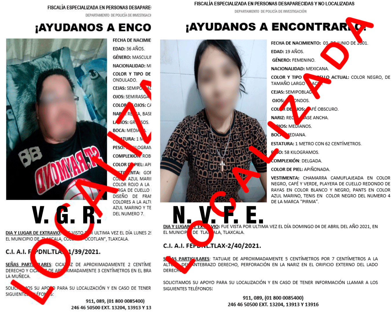 La Procuraduría General de Justicia del Estado (PGJE) a través de la Fiscalía Especializada en Personas Desparecidas y No Localizadas, ubicó a un hombre y a una joven que fueron reportados como extraviados.