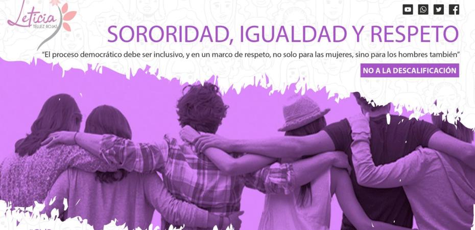 (sic) “Sororidad, igualdad y respeto. El proceso democrático debe ser inclusivo, y en un marco de respeto entre hombres y mujeres. NO A LA DESCALIFICACIÓN, escribió en Twitter.