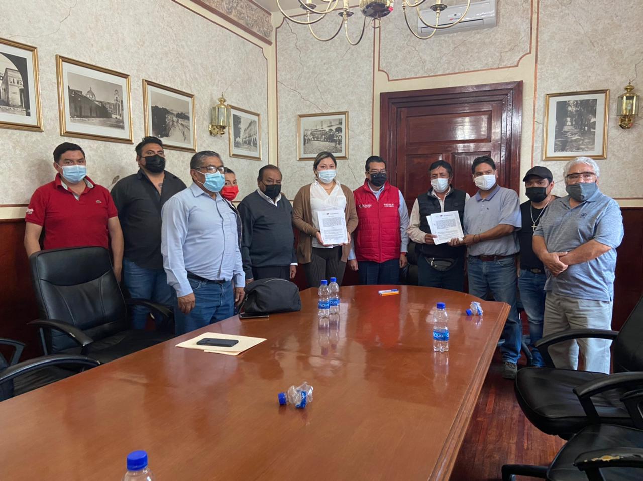 Autoridades del Ayuntamiento de Tlaxcala en conjunto con los representantes del comité del bazar de artífice de los días sábados y domingos, tuvieron una reunión el pasado 5 de abril del año en curso, a fin de realizar los acuerdos de inicio de las obras planeadas para la remodelación de la Plaza Xicohténcatl.