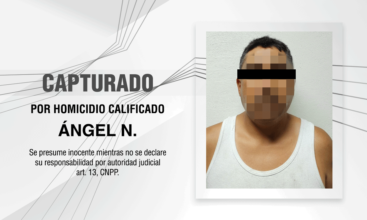 Por este hecho, la Policía de Investigación se abocó a esclarecer el caso, por lo que a través del trabajo operativo y de campo recabó la información necesaria que fue integrada a la Carpeta de Investigación correspondiente, permitiendo al Agente del Ministerio Público conseguir ante el Juez de Control la orden de búsqueda y aprehensión por el delito de homicidio calificado en contra de Ángel N.