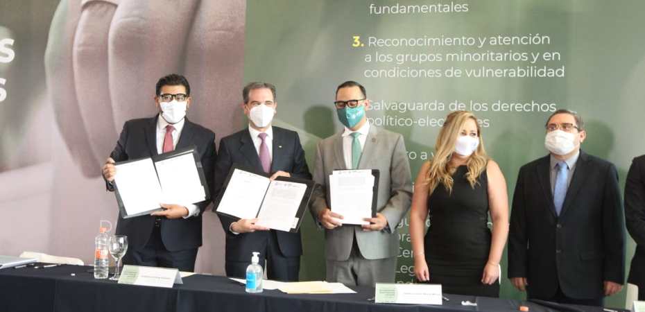 “Con la firma de este manifiesto se refrenda el compromiso de las autoridades electorales con los principios de certeza, legalidad, independencia, objetividad, imparcialidad y máxima publicidad, así como con la impartición de justicia pronta, expedita e imparcial durante el proceso electoral”.