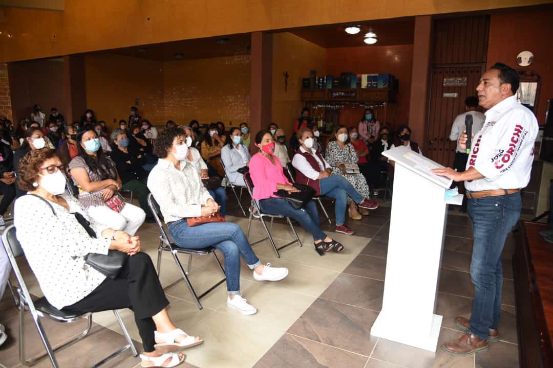Jorge Corichi, candidato de MORENA a presidente municipal de Tlaxcala, se reunió con un grupo de mujeres emprendedoras, amas de casa y jefas de familia, con el objetivo de plantear políticas públicas que empoderen a las mujeres tlaxcaltecas de la capital.