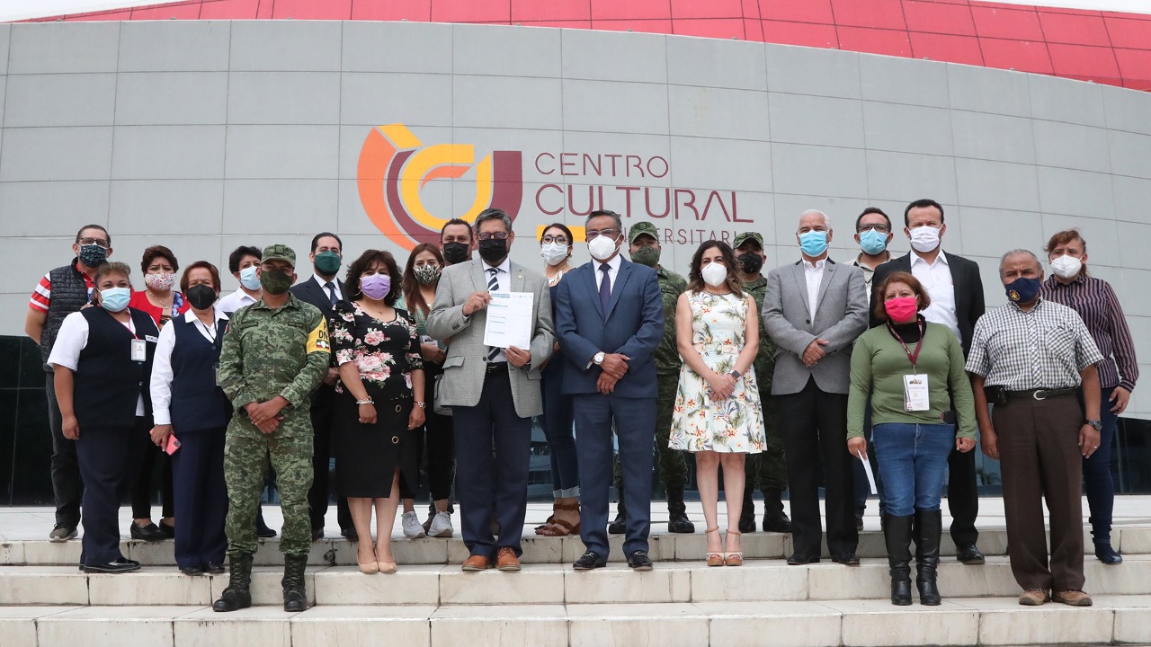 En la Universidad Autónoma de Tlaxcala (UATx), se realizó la firma con el Rector de la máxima casa de estudios, Luis Armando González Placencia, atestiguaron la firma personal del IMSS, ISSSTE, SESA, de la Secretaría del Bienestar y elementos de la Secretaría de la Defensa Nacional (SEDENA).