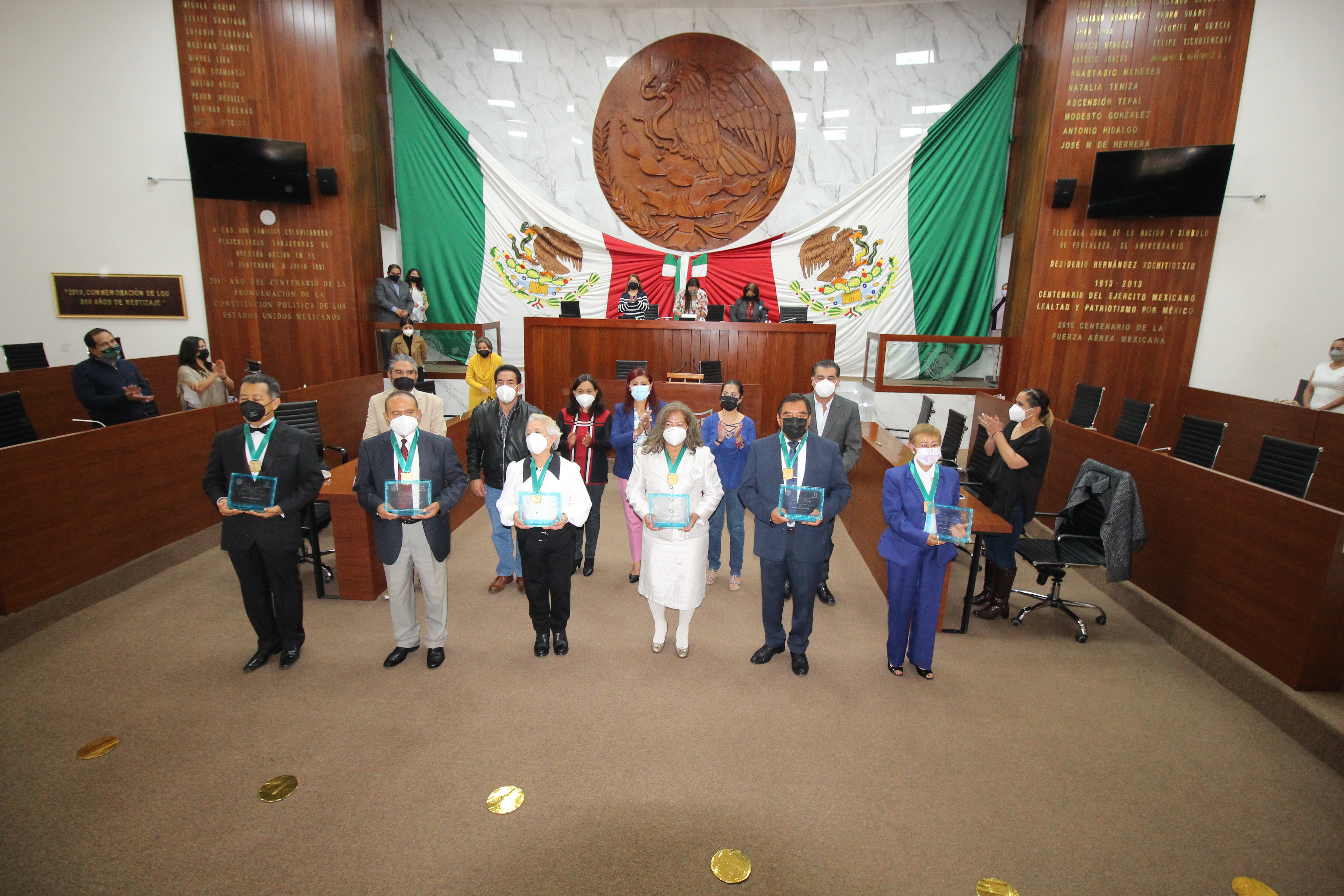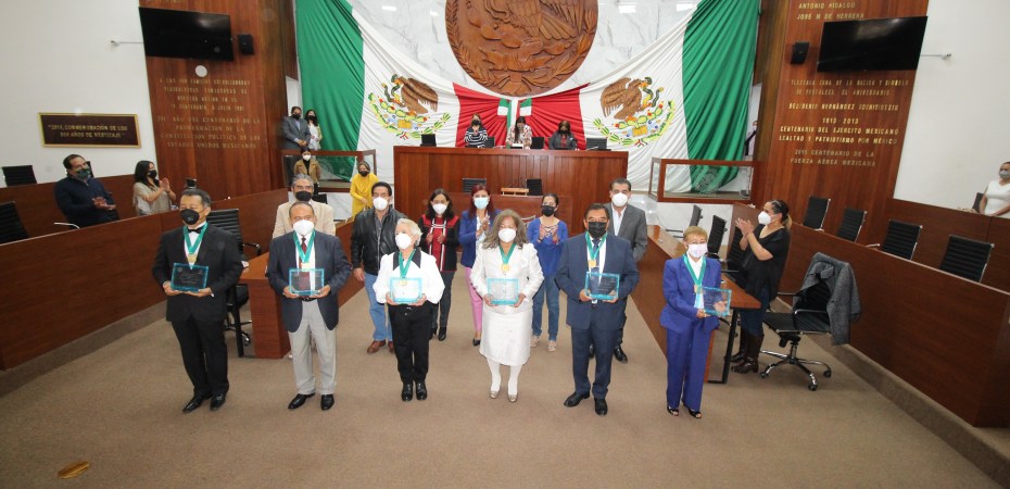 Los Legisladores locales reconocieron a los docentes Gloria Montealegre Flores, Rodolfo Morales Delgado, María Doris López Guzmán, Aurea Bertina León Báez, José Cutberto Hernández López y Casiano Palacios Jiménez, con la presea “50 años Por la Educación al Servicio del Pueblo”.