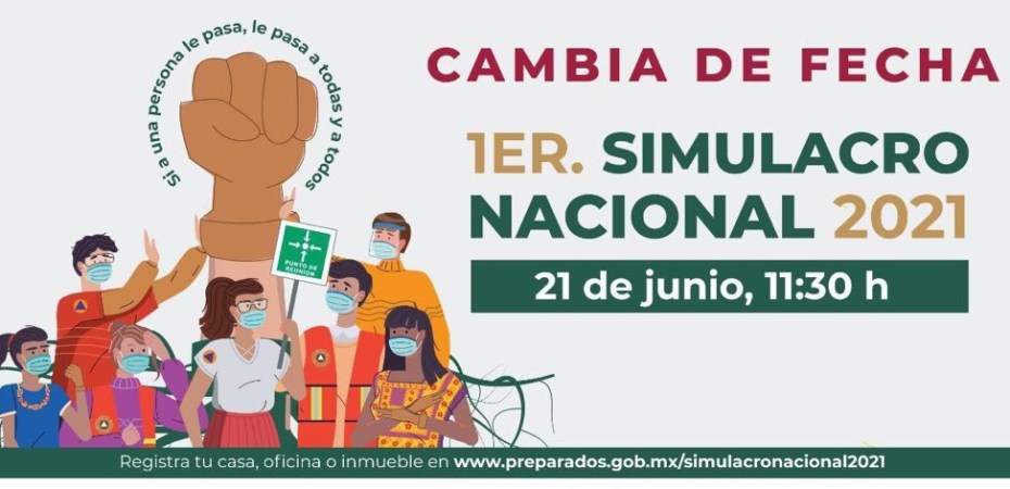 La Coordinación Estatal de Protección Civil (CEPC) informó que la Coordinación Nacional de Protección Civil (CNPC) determinó reprogramar el Primer Simulacro Nacional 2021 que se desarrollaría el 19 de mayo, por lo que la nueva fecha es el próximo 21 de junio a partir de las 11:30 horas.